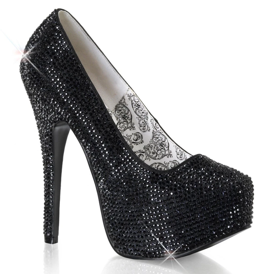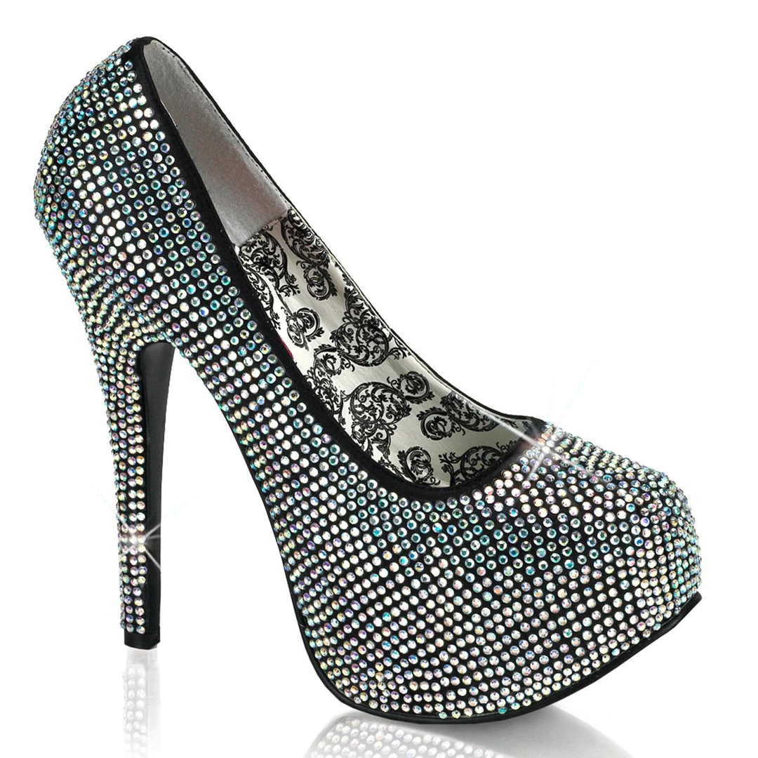 Have some serious fun with these fabulous pumps and rhinestone ornamentation all over. Bordello Shoes are a New Range From Pleaser Shoes, with a Burlesque, Vintage Inspired Theme. Teeze-06R – 5 3/4 Inch Rhinestone Encrusted Concealed Platform Shoes Even The Heel Is Covered In Rhinestones.