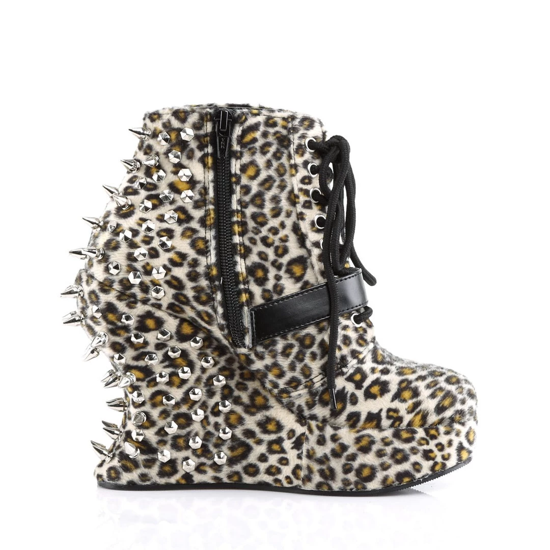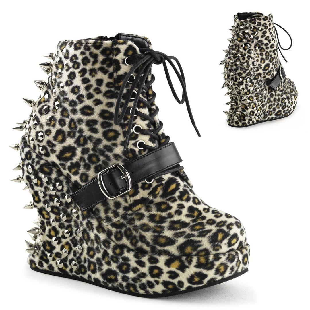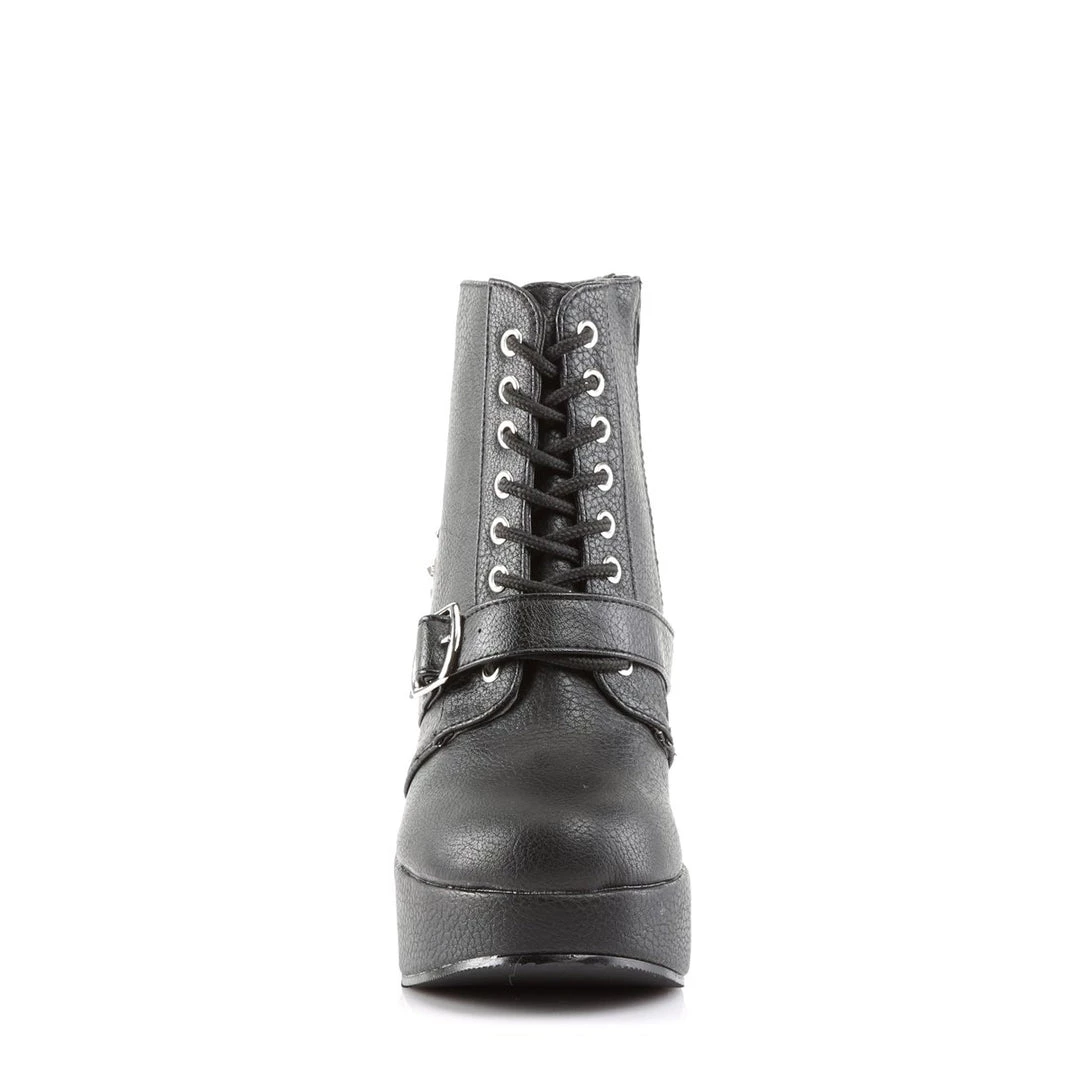 5″ Wedge Platform, Lace Up Ankle Boot With Spike Stud Embellishment Along the Back & Heel, Side Zip.