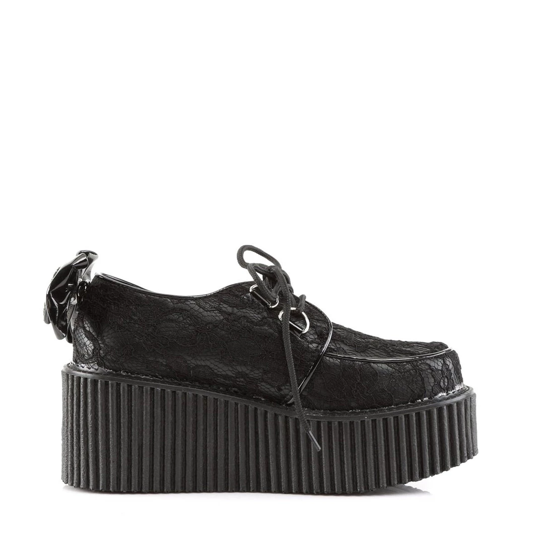 3″(7.5cm) Platform Lace-Overlay Creeper Featuring Lace Bow w/Skeleton Hand and D-Ring Lace & Piping Detail