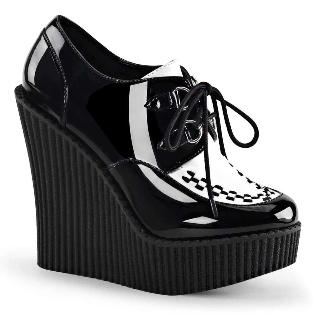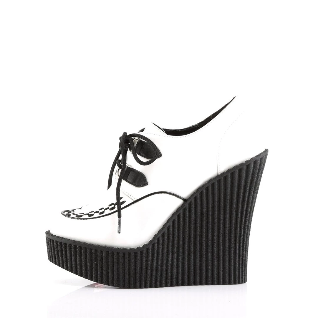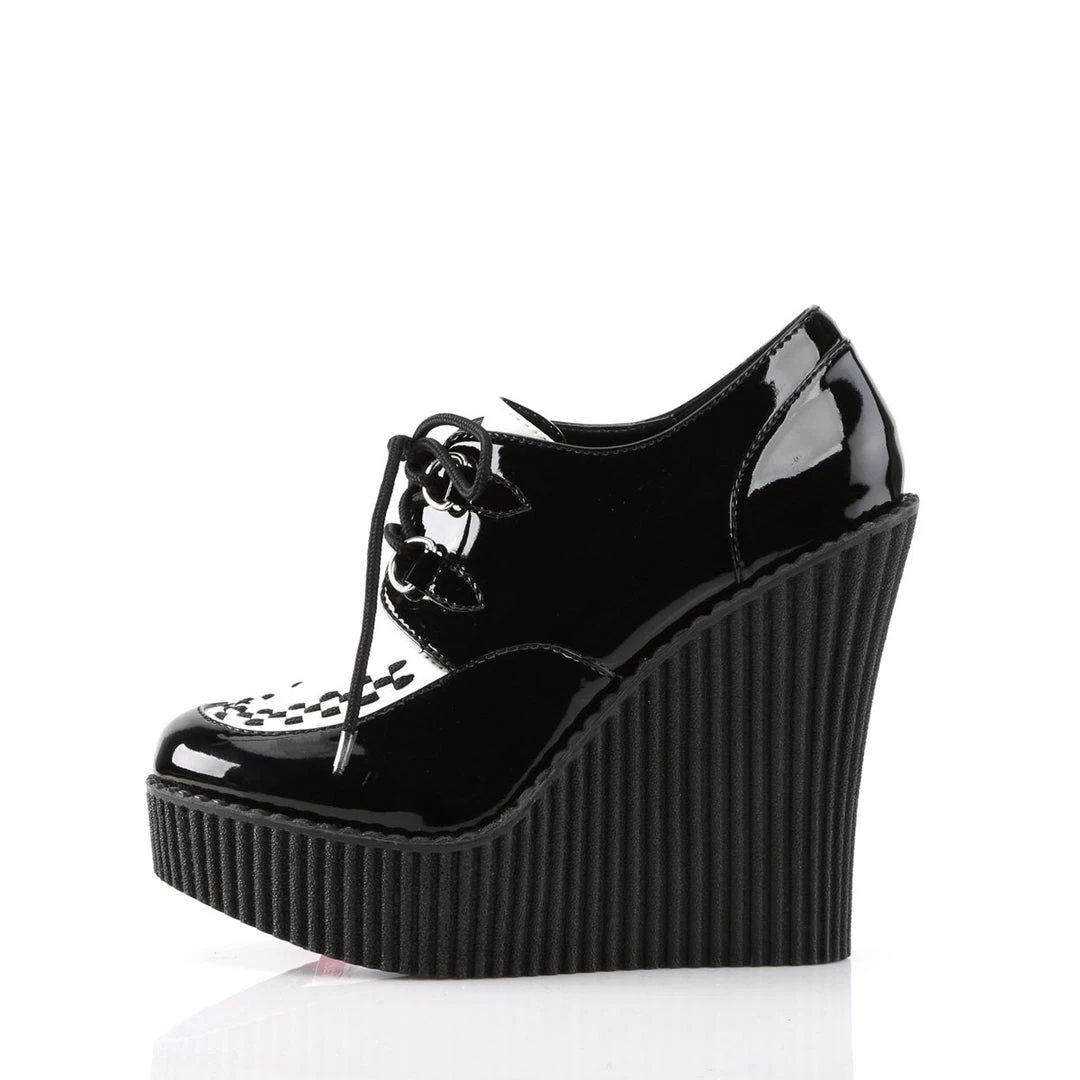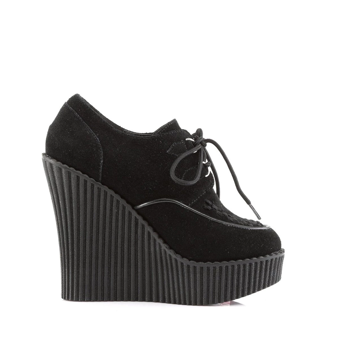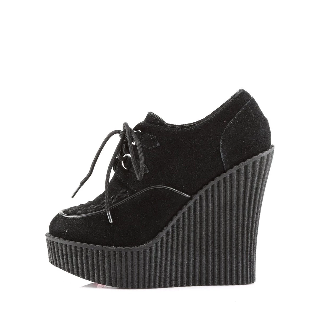 5 1/4″(13.25cm) Wedge Platform D-Ring Lace-Up Front Vegan Creeper w/Interwoven Apron and Piping Detail