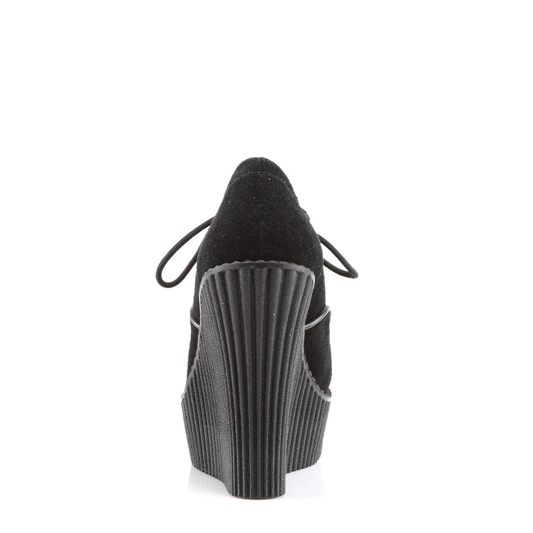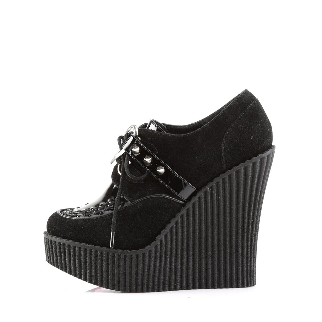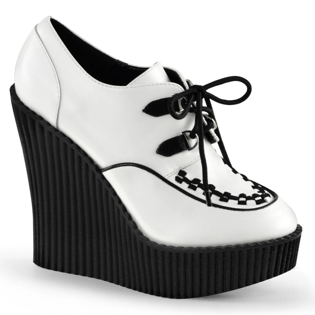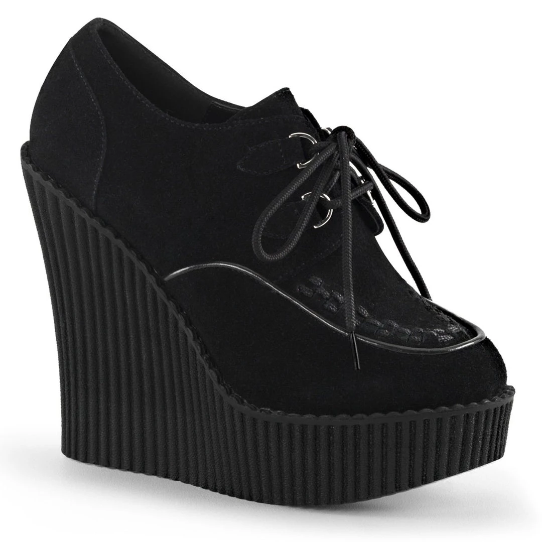 5 1/4″(13.25cm) Wedge Platform D-Ring Lace-Up Front Vegan Creeper w/Interwoven Apron and Piping Detail