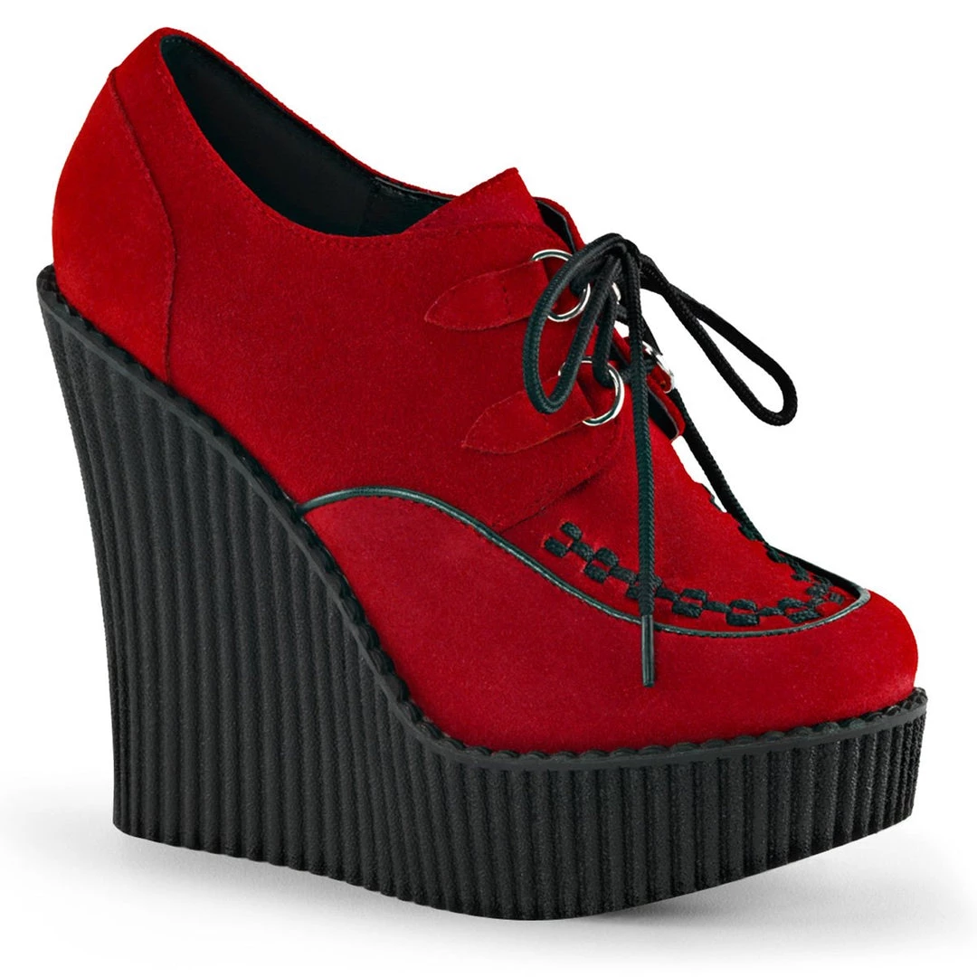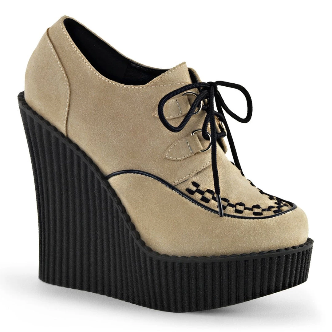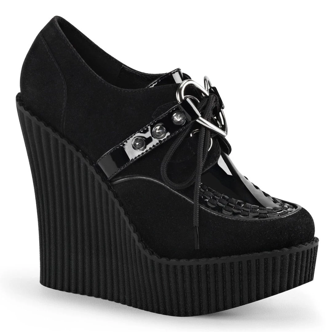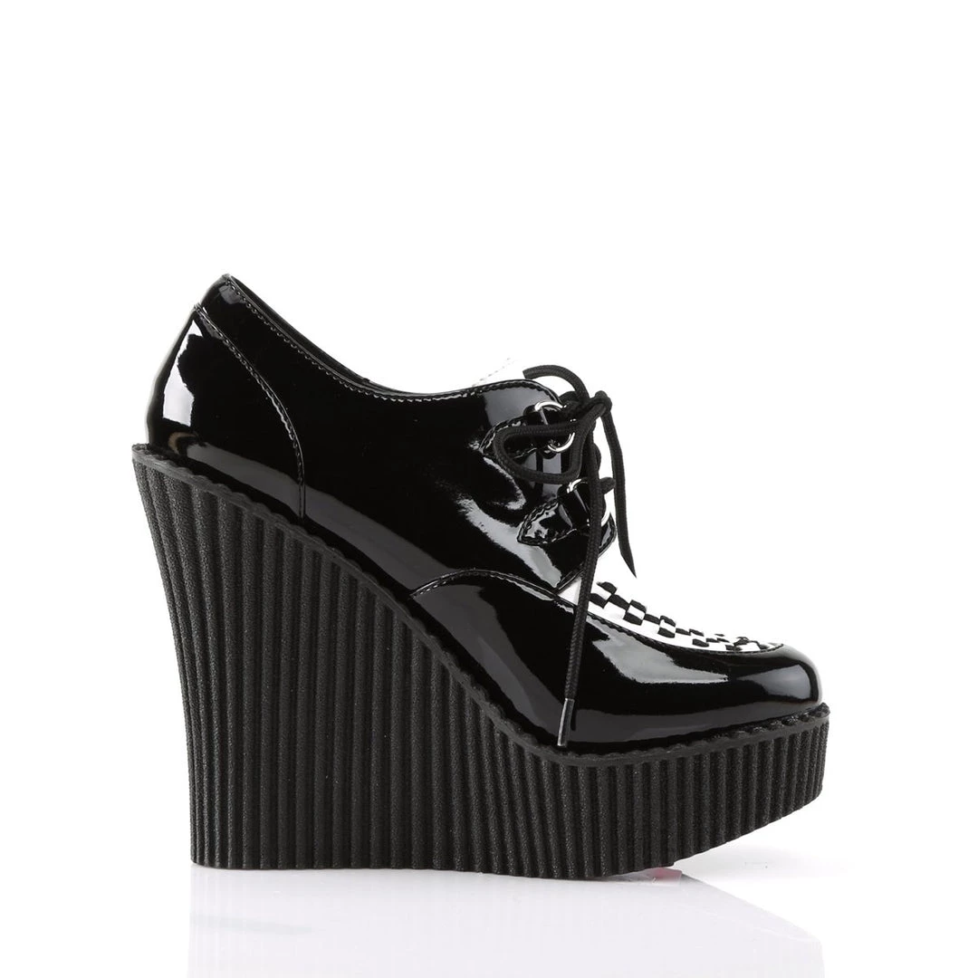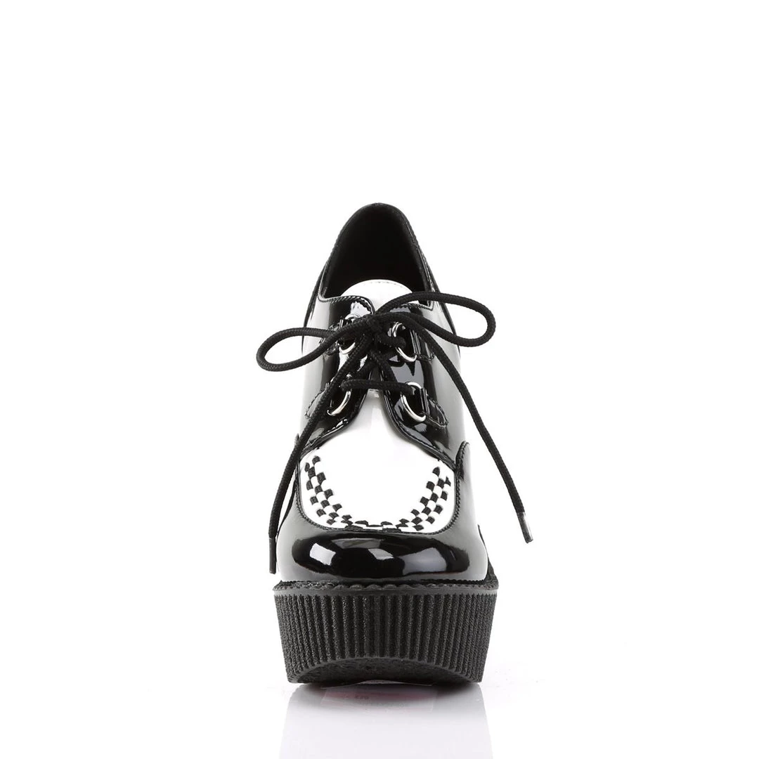 5 1/4″(13.25cm) Wedge Platform D-Ring Lace-Up Front Vegan Creeper w/Interwoven Apron and Piping Detail