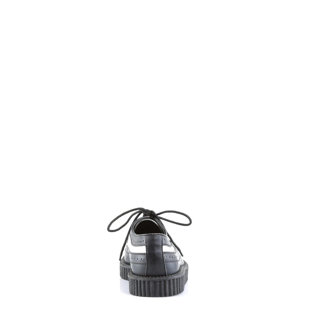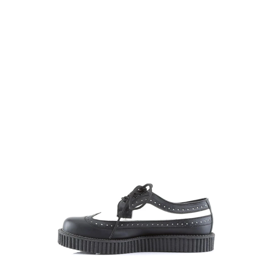 A lace up front stylish unisex style of creepers with a 1″ platform. With its tall and chunky outsole, friends might not even notice you‚Äôre two inches taller because of the dramatic wingtip detailing on the leather upper that will capture attention wherever you go. Consider this shoe office or mosh pit appropriate.