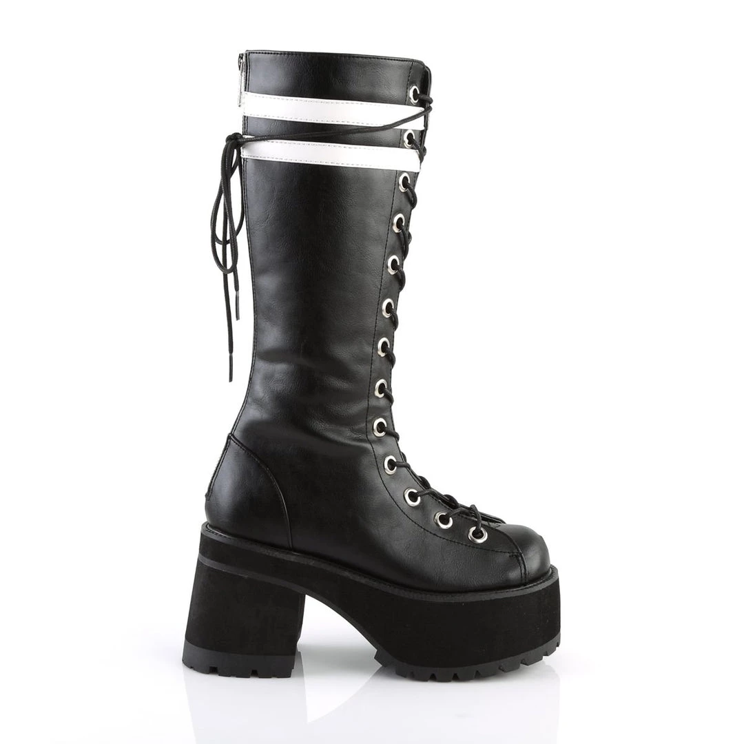 Kick back in these bold and edgy 3 3/4″ heel, 2 1/4″ platform knee high boot with back metal zip