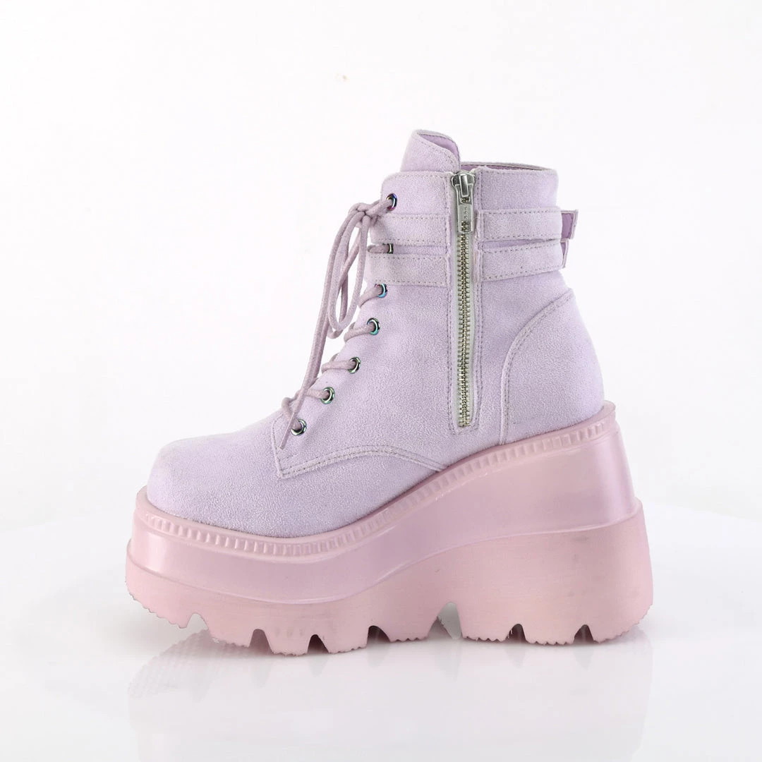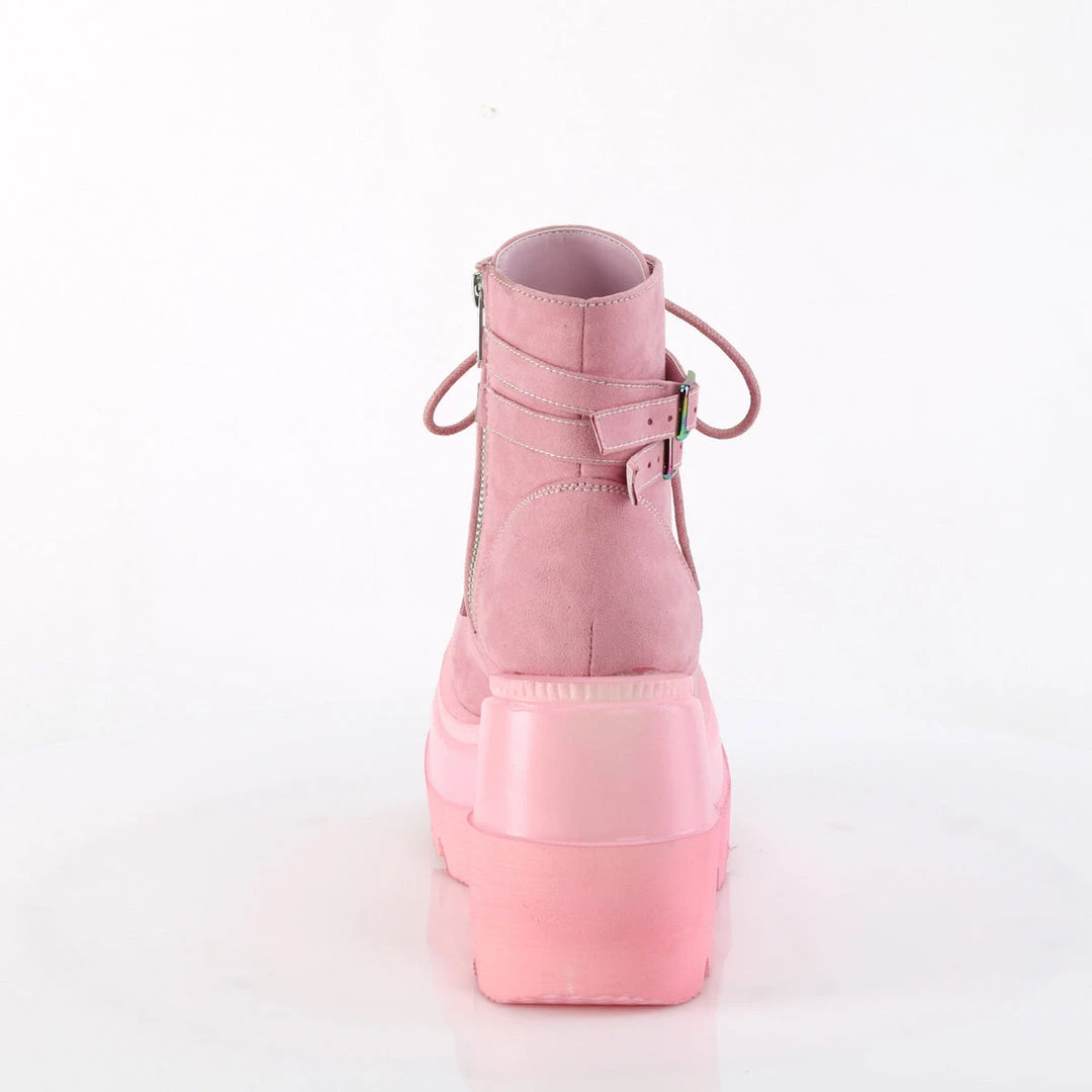 4 1/2″(11.5cm) Stacked Wedge Platform Lace-Up Front Ankle Boot w/Double Buckled Ankle Straps, Inside Zip Closure.