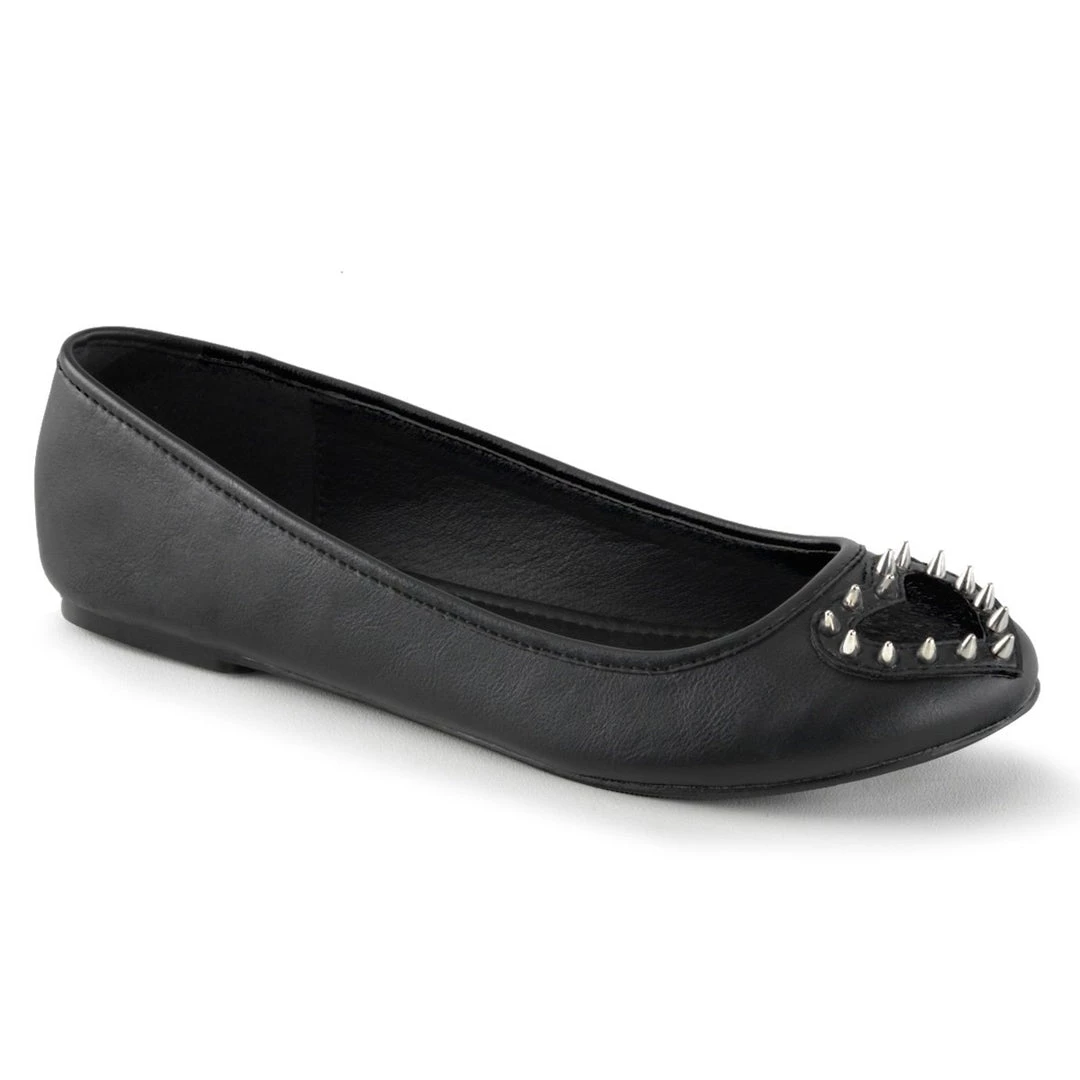 Round Toe Flat Featuring See-Through Heart Cutout Design w/Pointed Studs Detail