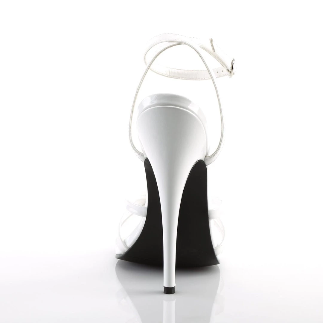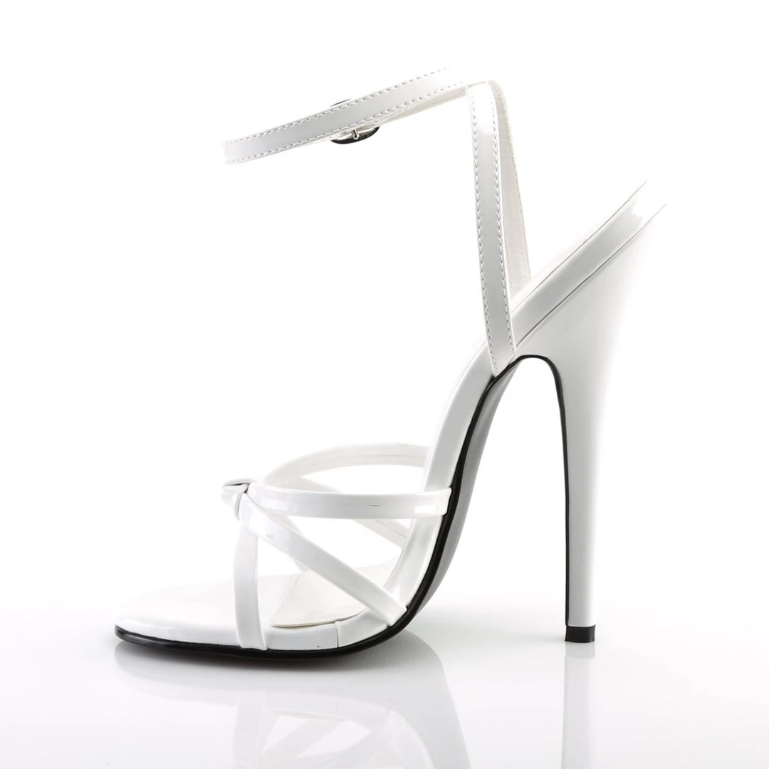 Feminine black patent sandals with three bounded straps with knot decoration in the middle and two side straps wrapped around the ankle and fastened with a metallic buckle on one side. The dazzling 6 inch (15 cm) stiletto heels complete this sexy look that turns heads.