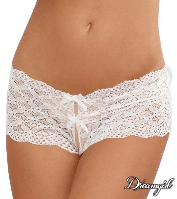 Innocent with a twist! This sweet and sexy heart stretch lace panty with open crotch and large cut-out heart detail on back is sure to be a hit!