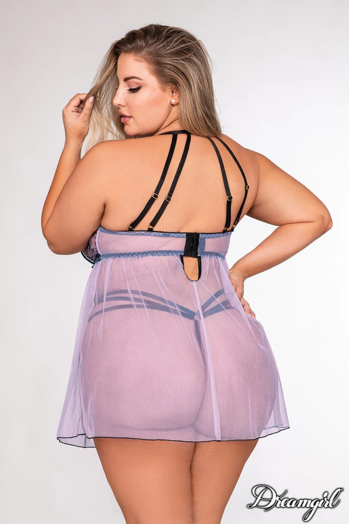 Dreamgirl Stretch Mesh With Embroidered Babydoll
