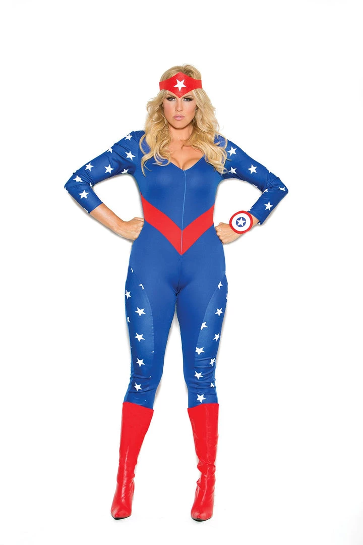 American Hero – 3 pc. costume includes long sleeve jumpsuit, wrist band and head piece.