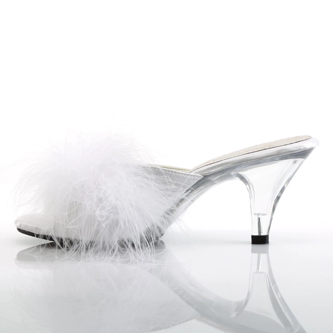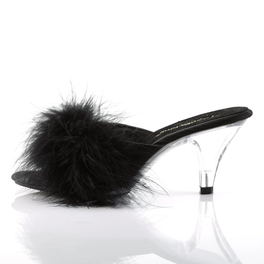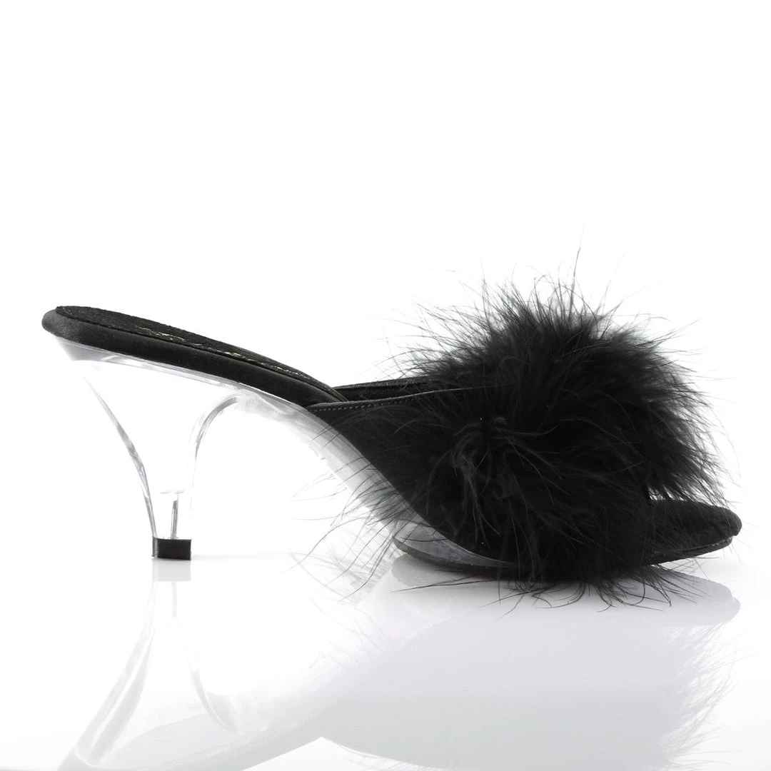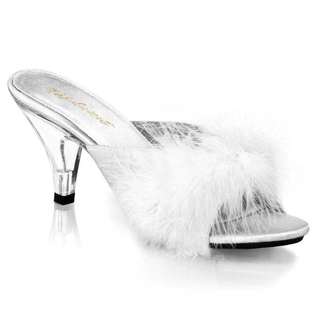 Sexy and comfortable, these satin slippers are extremely versatile and hard to ignore. They feature a satin strap with open toe and marabou embellishment on top, matching sole and a 3 inch (7.5 cm) high heel will outfit you in super-sexy style.