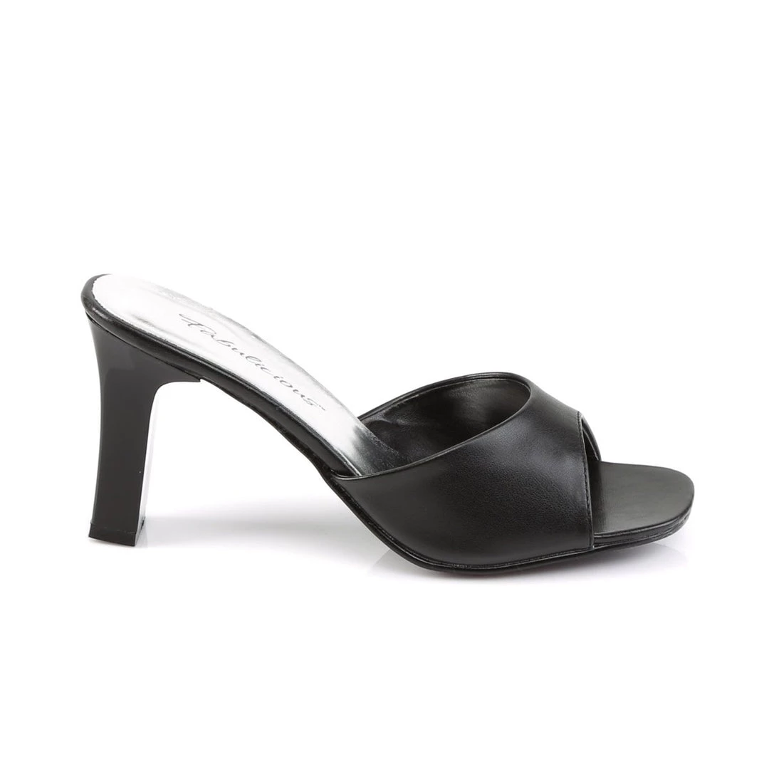 Fall in love with the Romance sandal from Pleaser. This simply styled and sexy shoe features a single strap at the vamp. A glossy high heel brings an alluring lift to the look and a metallic lining offers a touch of shine. Featuring Square Heel, Low Platform Open Toe Slide Sandal.