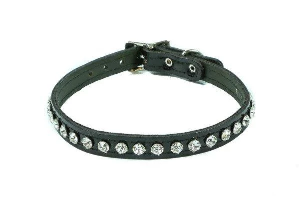 Shine bright with this 1/2″ black patent leather choker with one-row rhinestones.