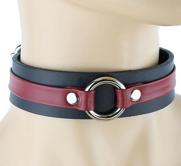 Complete your look by adding this 1 1/8″ leather strap choker with ring.