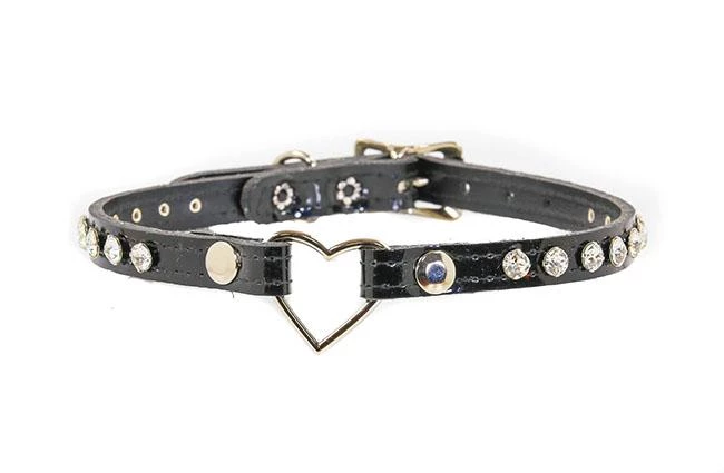 Rocker style small heart rhinestone choker.