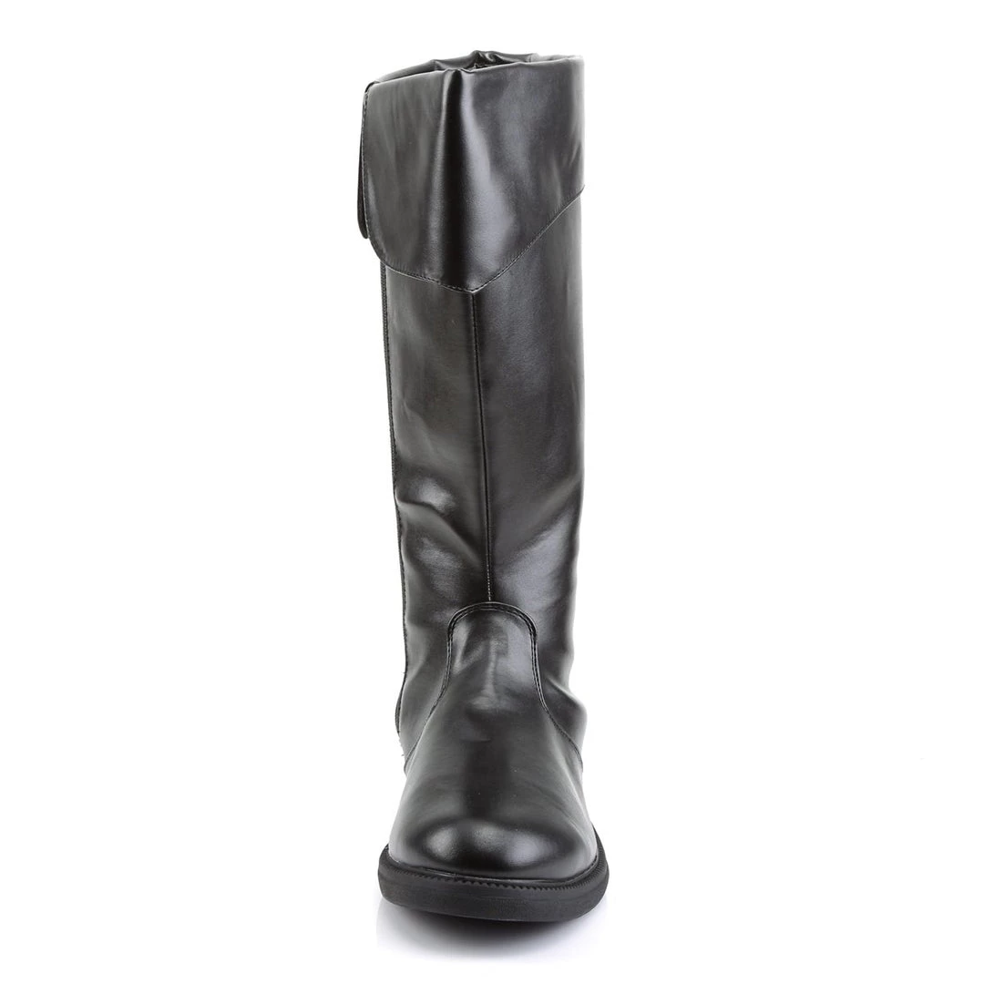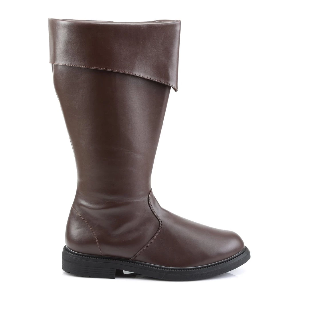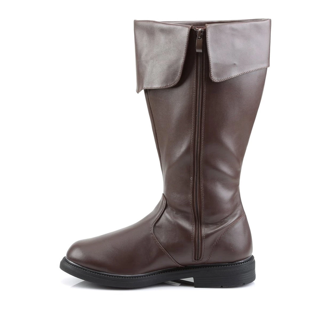 Flat men’s pull-on mid calf boot with fold down cuff. Summon your inner pirate with this stylish boot from Funtasma. The film-inspired Halloween Captain boot is constructed from synthetic leather and manmade sole to add some swagger to your step.