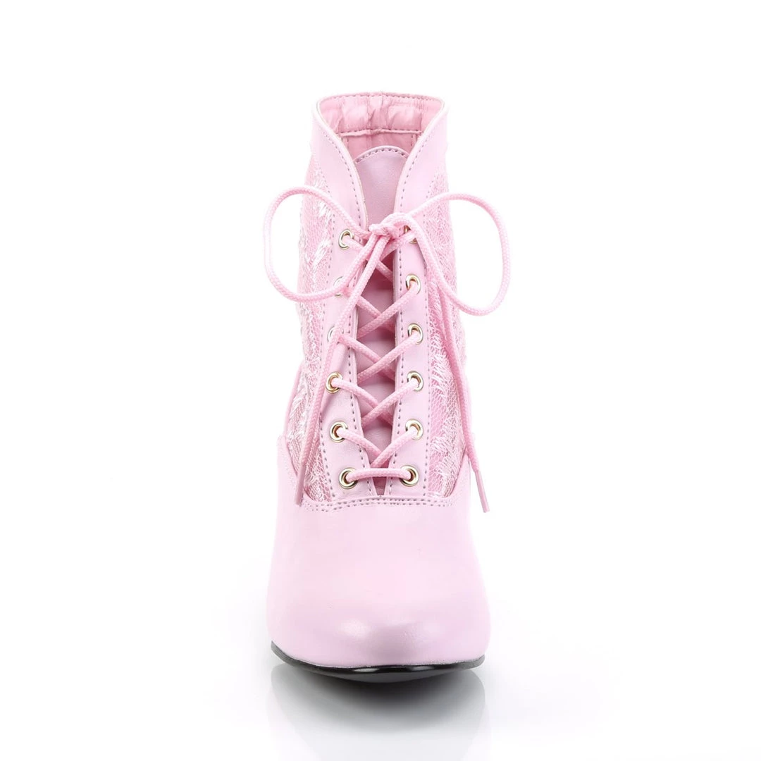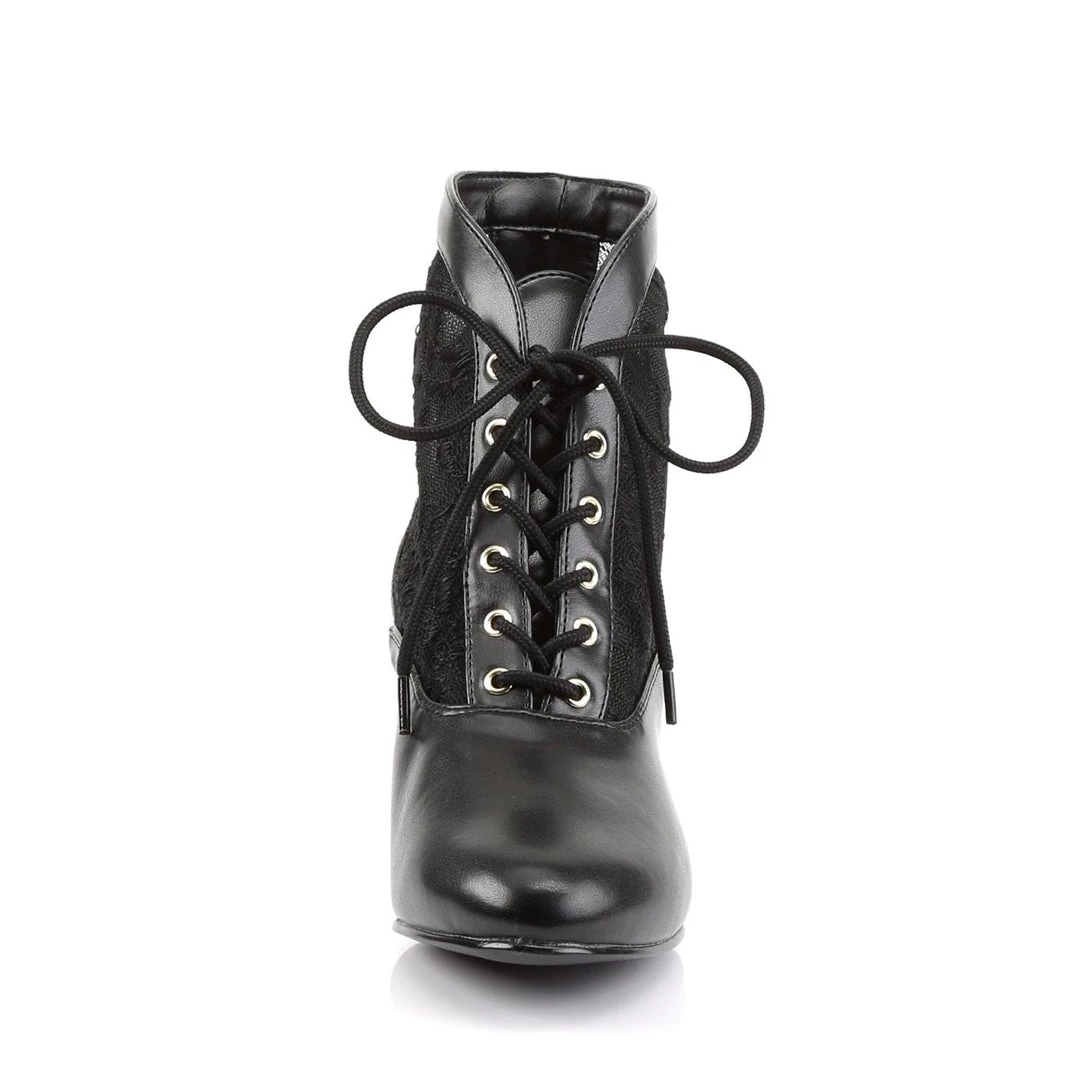 Step back into the Victorian era in this ankle boot. It features a mid heel, lace sides, and has a great style.