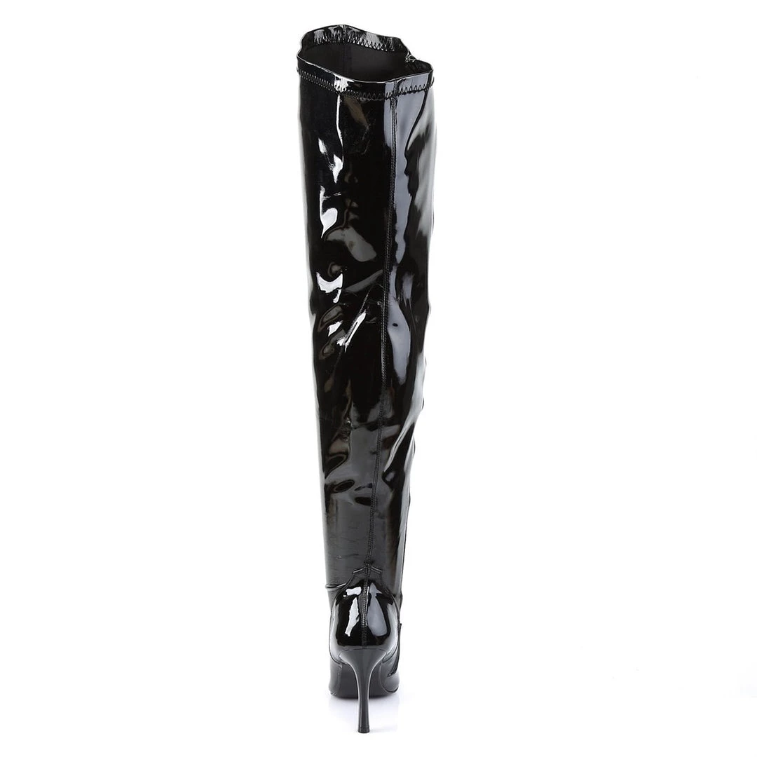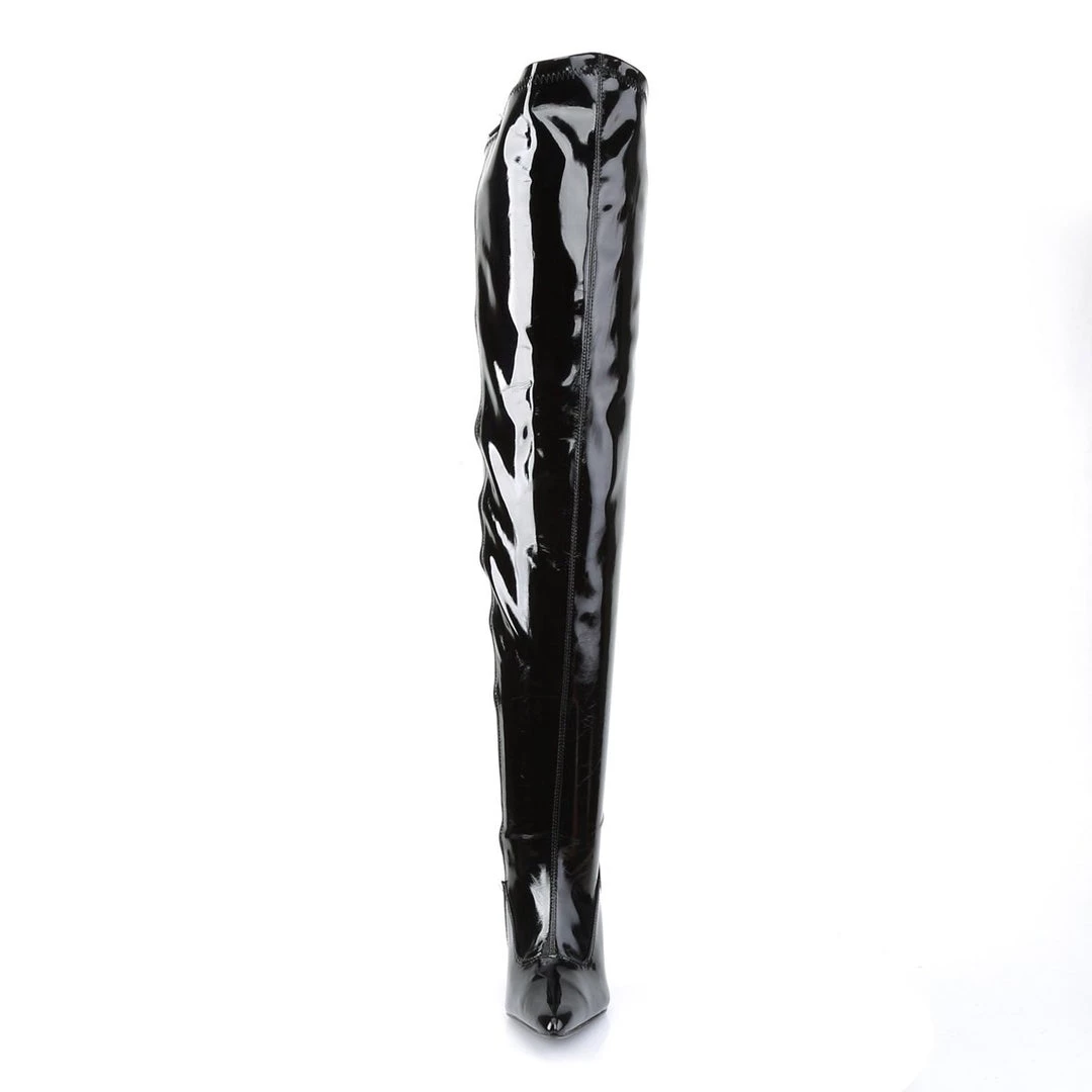 The glossy faux patent Boots pulls on easily and hugs your curves in all the right places. The pointed toe, stiletto heel, and mid-thigh cut are striking enough to turn every head as you walk by. Attract attention in these sexy boots. They feature a thigh high height with a high heel and stylishly pointed toe.