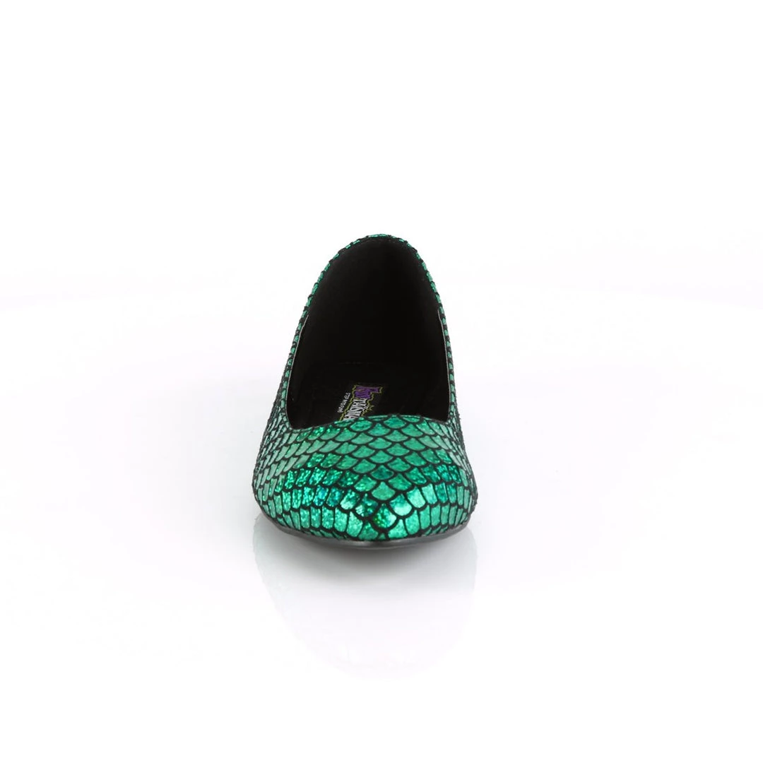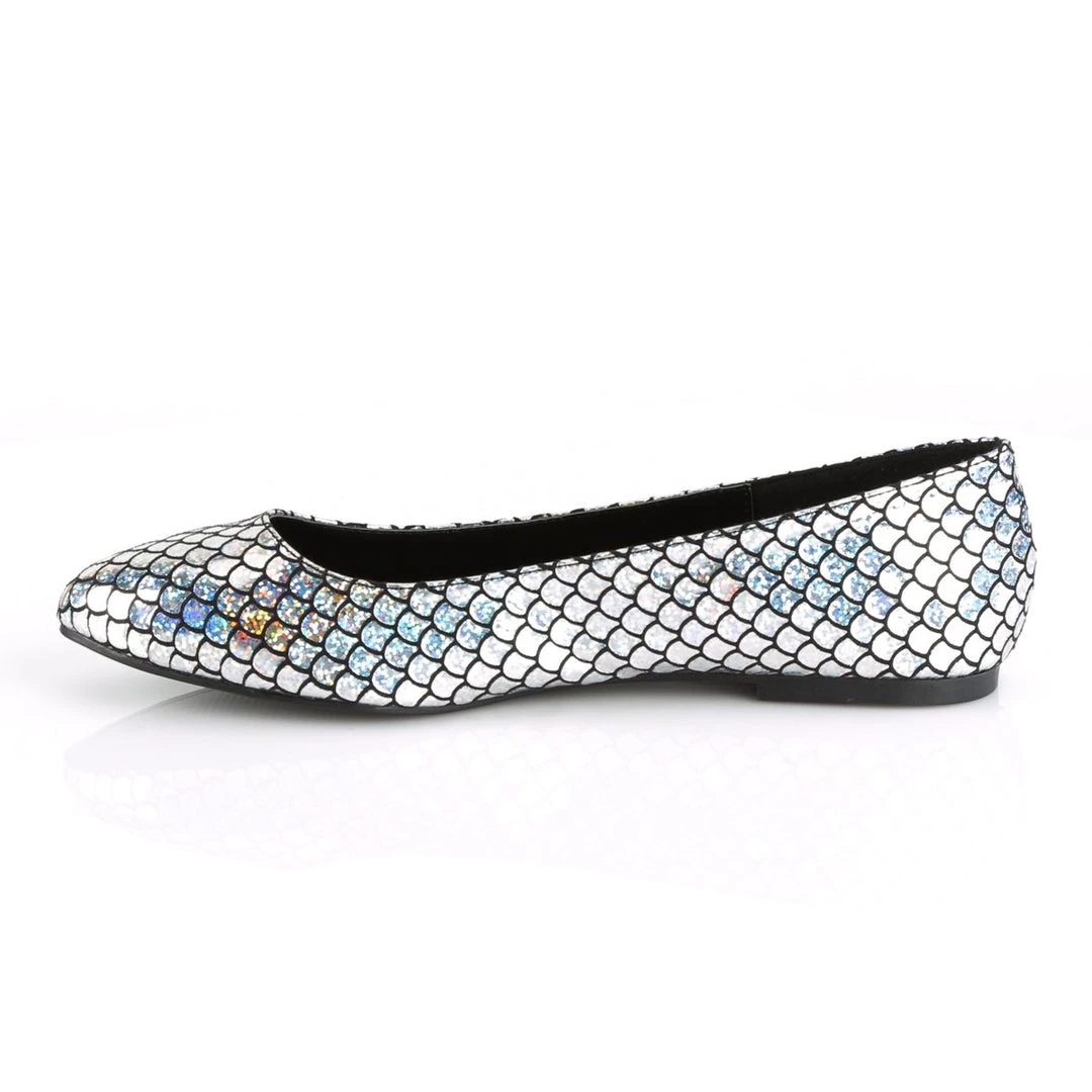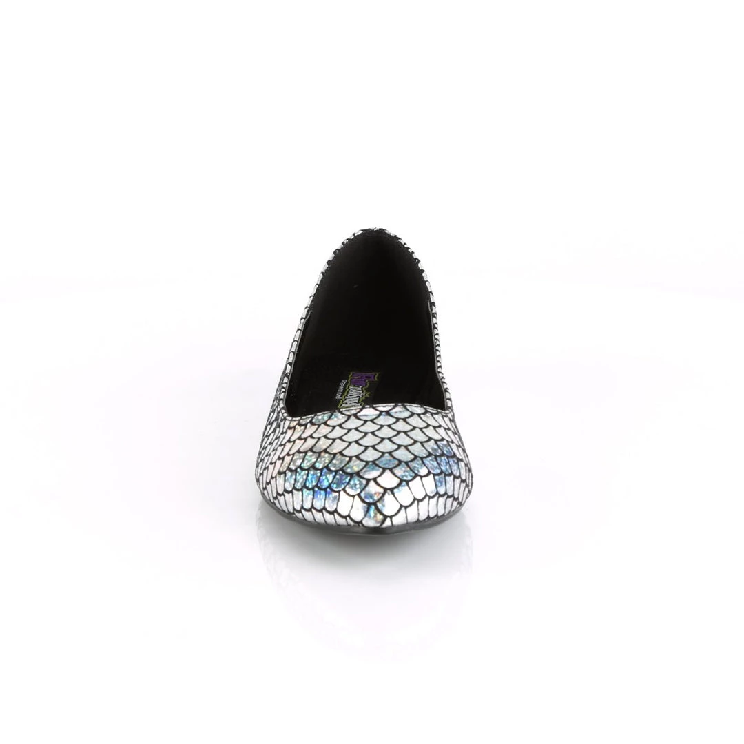 Fun and classic pointed toe flats with mermaid scale upper design.