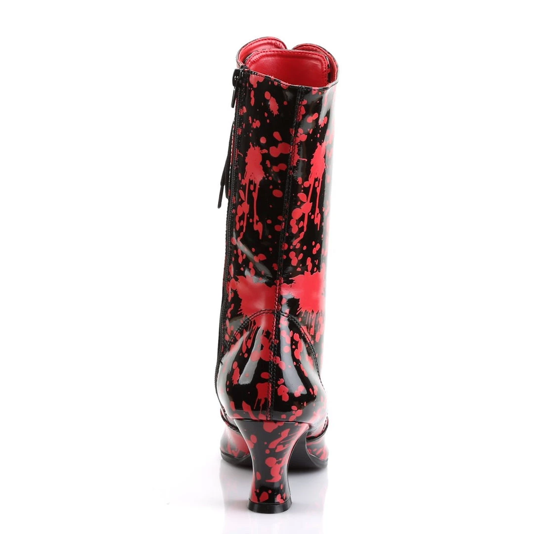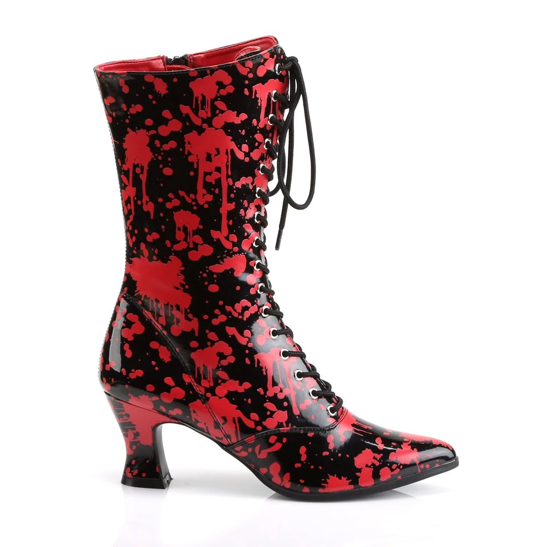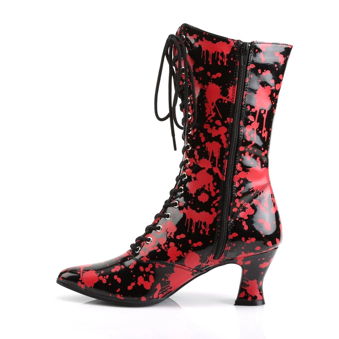 This Mid Calf boot features 2 3/4″(7.0cm) Heel Front Lace Up,Bloody Print Overlay, Full-Length Inside Zip Closure.