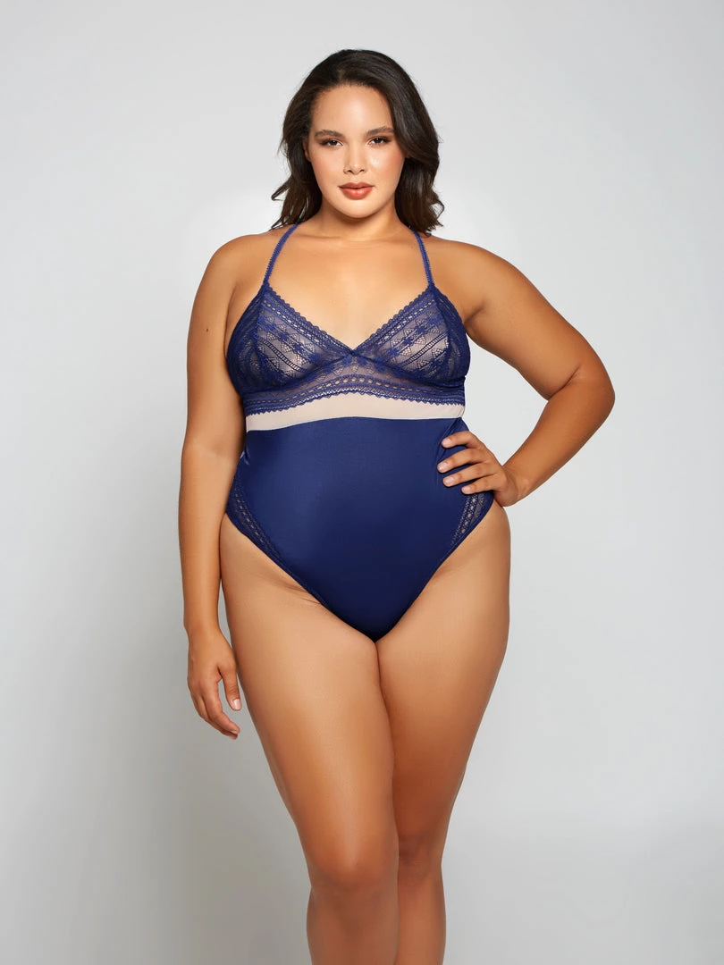 Heat up your summer look with this Clover Teddy features geometric lace to give more a unique detail, with matte microfiber teddy with contrast underbust panel, side lace panel, and thong back.
