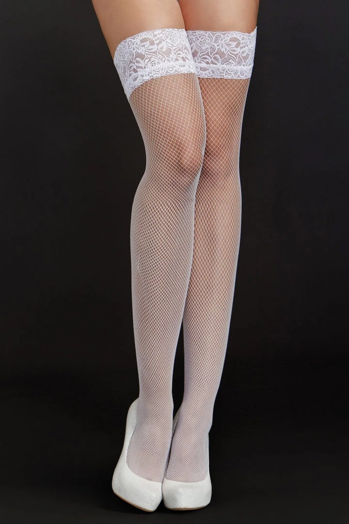 Show off those gams in these fine fishnet thigh highs with 2” lace top.