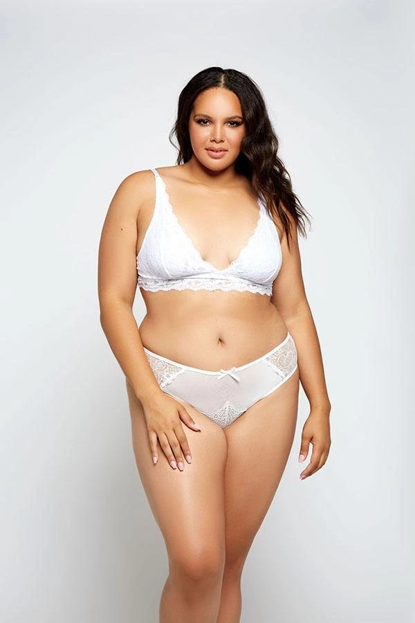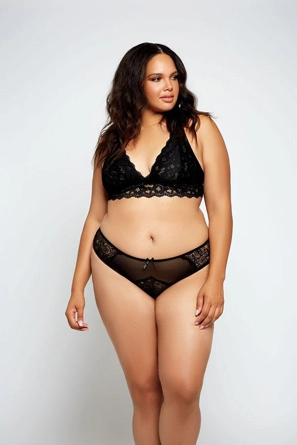 Lace and mesh cheeky panty with bow details and keyhole back.
