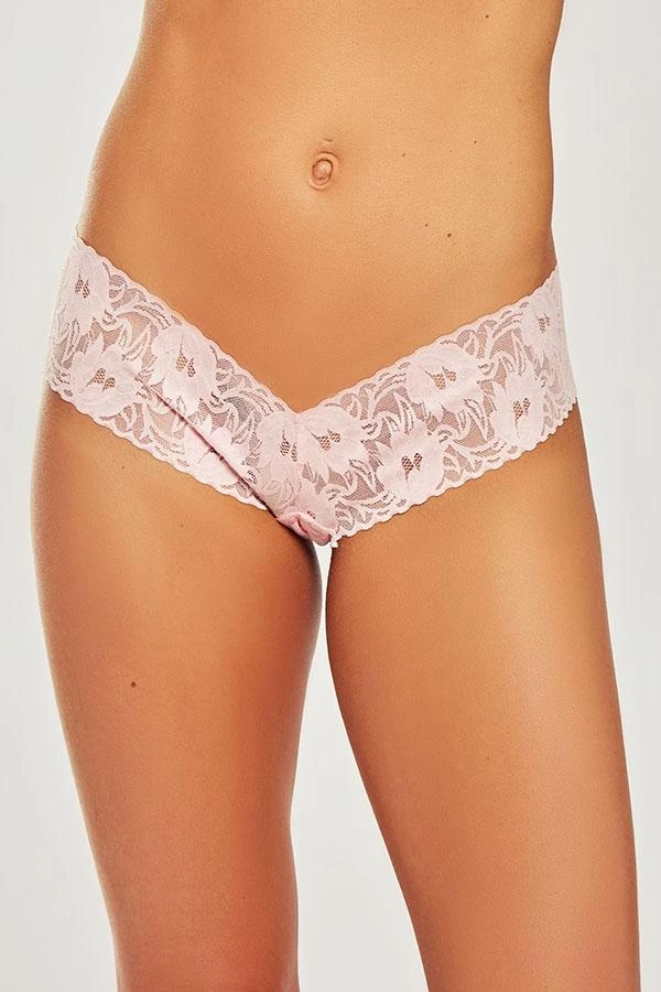 Stretch lace cheeky with low rise v-plunge cut.
