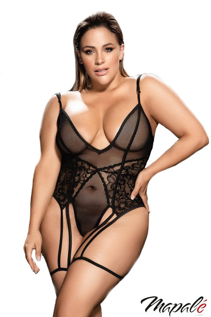 Mapale Lingerie Strappy Fishnet Garter Teddy Women