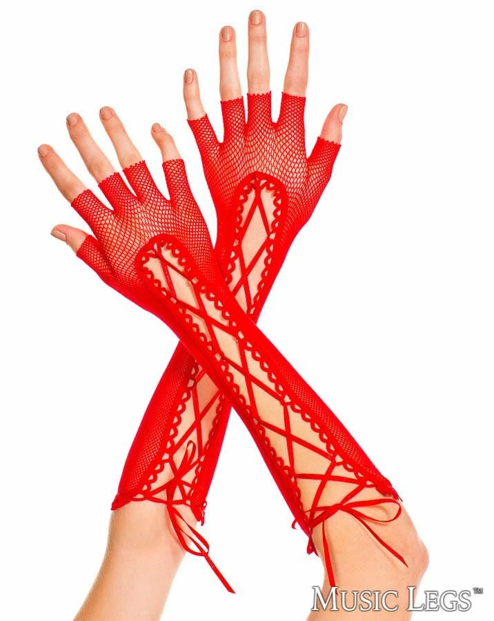 Music Legs Fingerless Lace Up Fishnet Elbow Length Warmer Costumes
