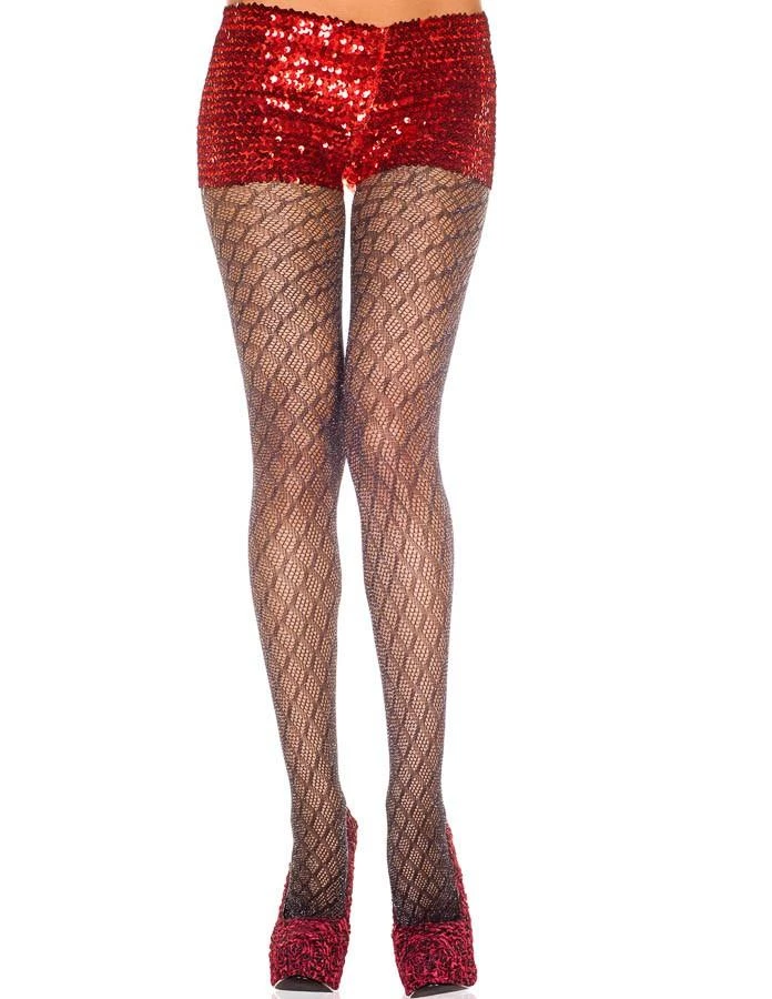 Lurex diamond design spandex pantyhose.