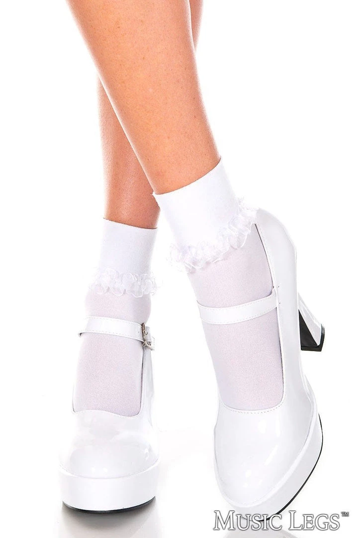 Music Legs Ruffle Trim Ankle Hi Hosiery