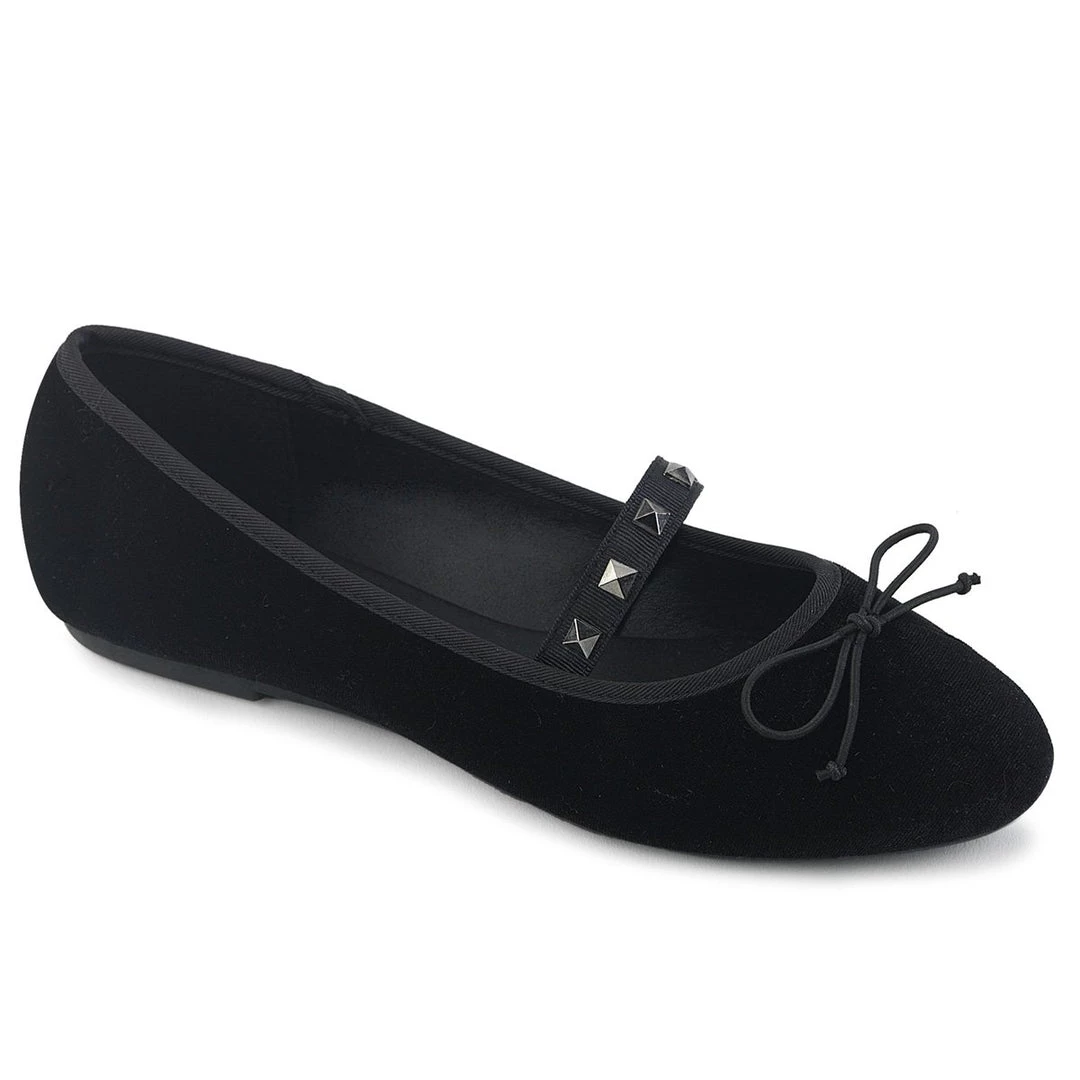 Cute with an edge, round toe Mary Jane ballet flats. These shoes feature stud detailing on strap & bow on toe