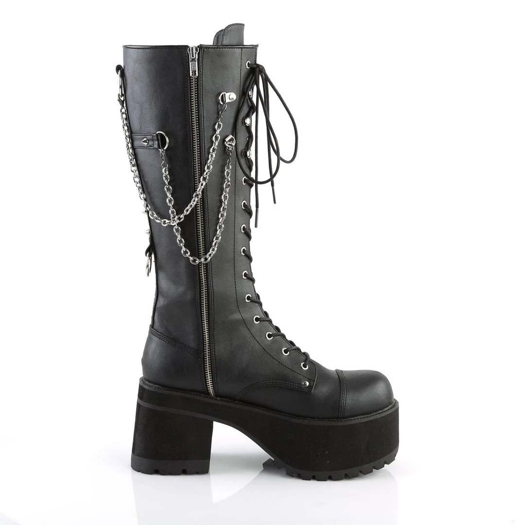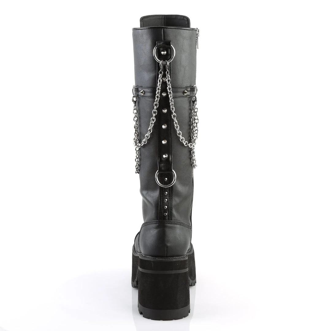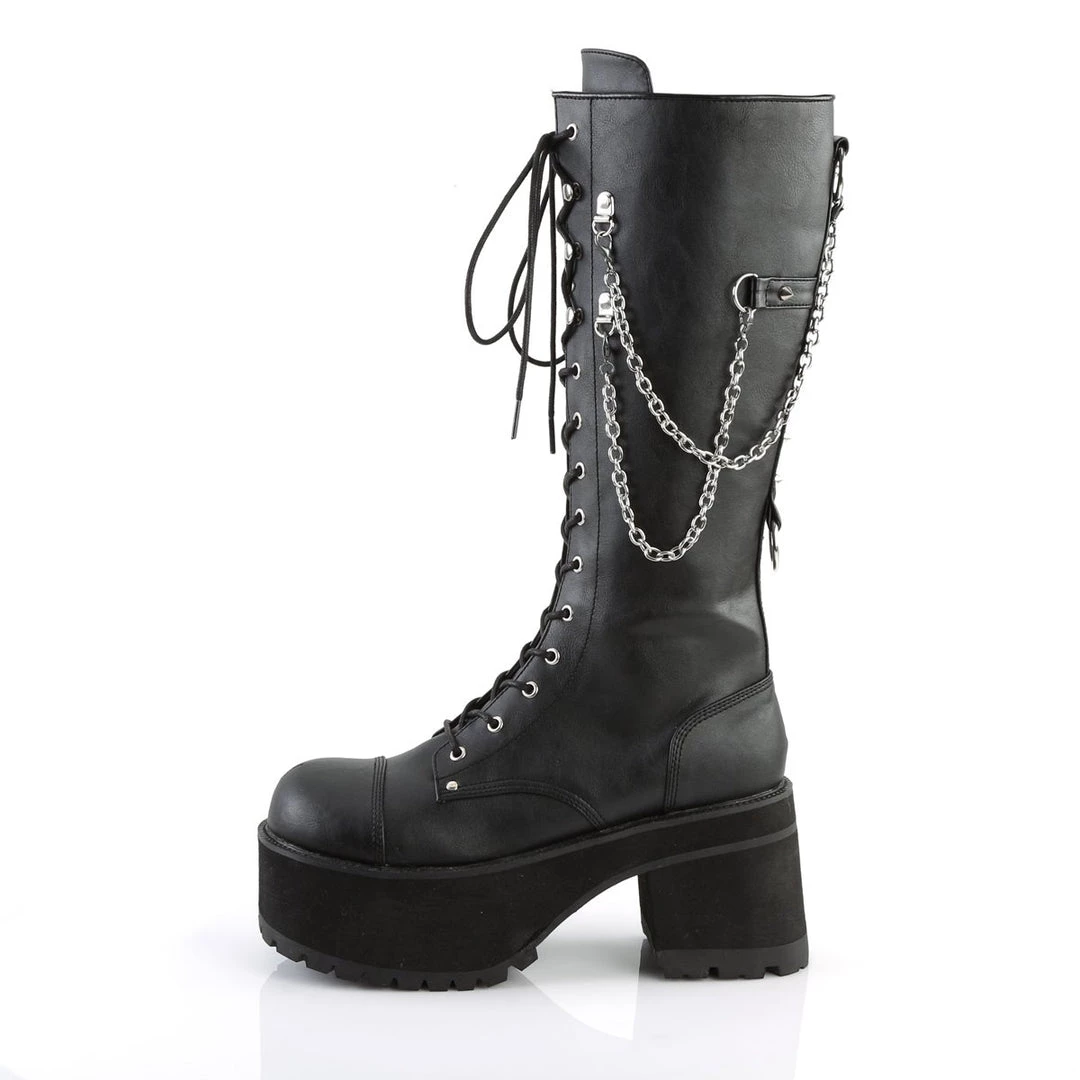 Solid and edgy 3 3/4″ heel, 2 1/4″ platform knee high boot with metal side zip.
