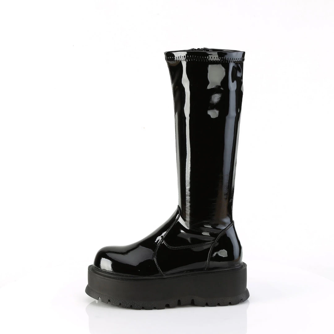 Fun & versatile 2″ (51mm) platform stretch knee high boot with full length inside zip closure for easy wear and go.