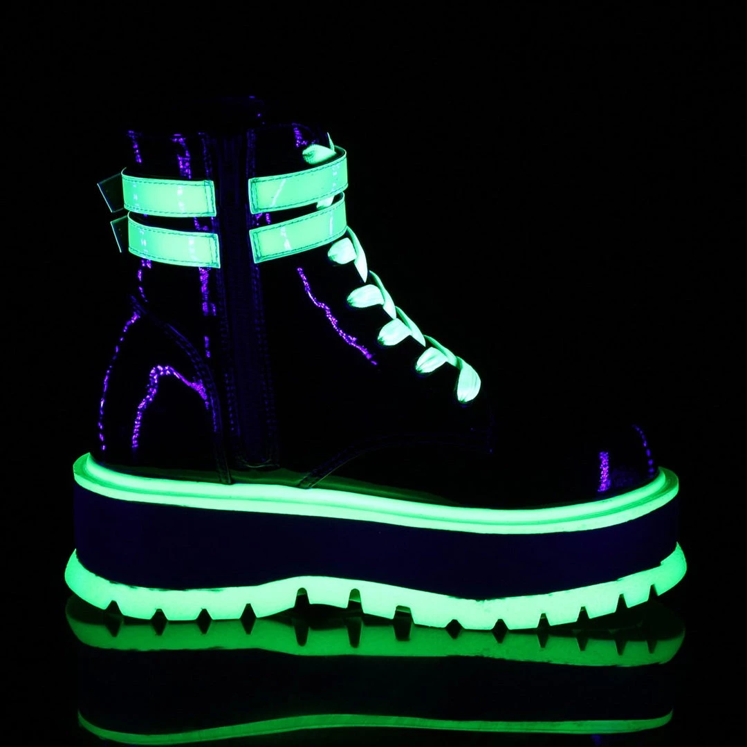 Funky 2″ (51mm) platform lace-up front ankle boot with double buckled ankle straps with inside zip closure.