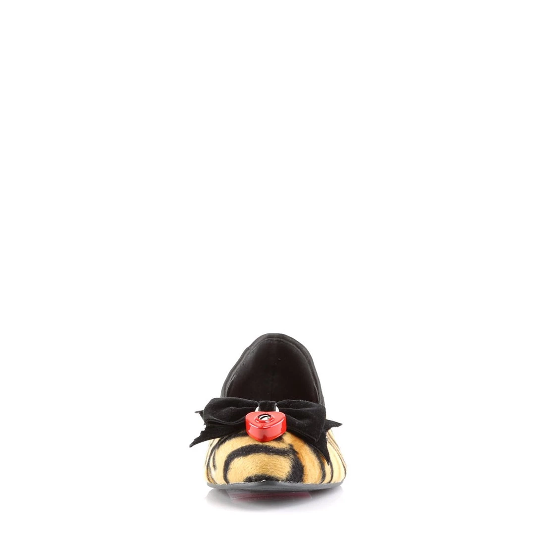 Tiger Print Flat w/Bow & Red Padlock on Vamp and Piping Detail