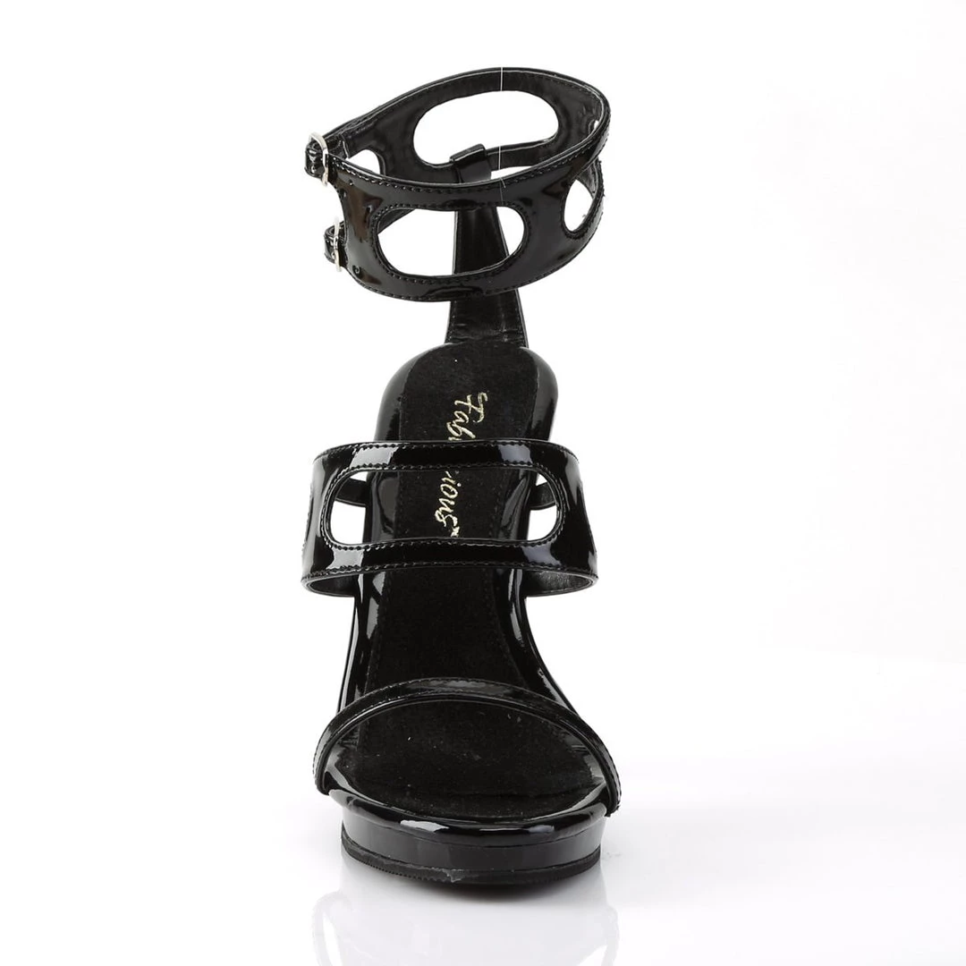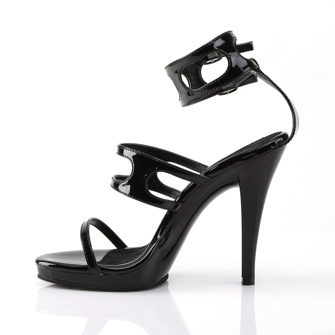 D’Orsay-inspired black sandals with double toe strap with wider sides. A cut-out wide ankle strap as adjustable strap with elasticated insertion for a perfect fit. The 4.5 inch high stiletto heels and the pointed toe complete the dominatrix look of these provocative shoes. The softer inner sole for added comfort.