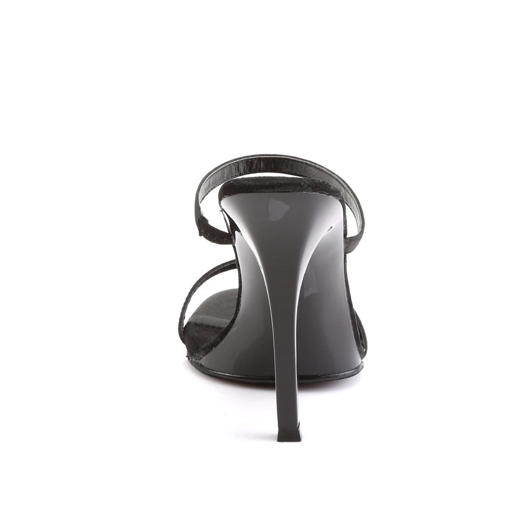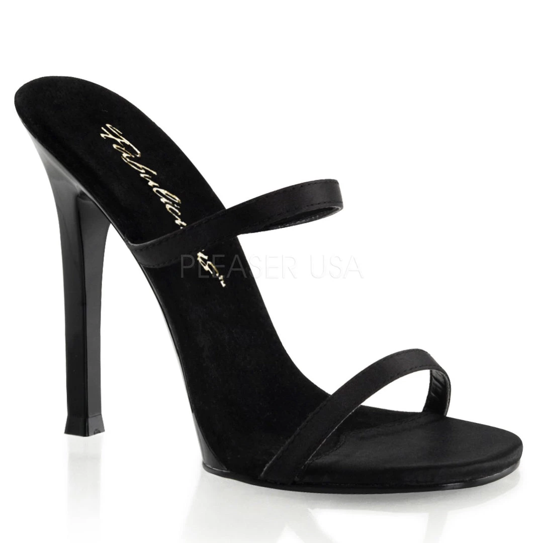 Double strap satin mule with one strap around the toes and another one in instep area. The soft tone-to-tone cushioning and the 4.5 inch (11.5 cm) high stiletto heels add comfort and style, respectively, so that you can enjoy a sexy, simple and easy to wear sandals.