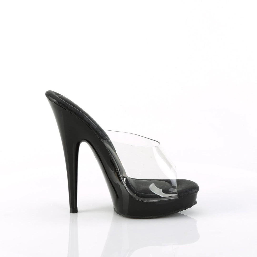 Classic 6″ (152mm) heel, 1″ (25mm) platform peep toe slide. Includes a pair of matching color gel insoles for arch support and comfort.