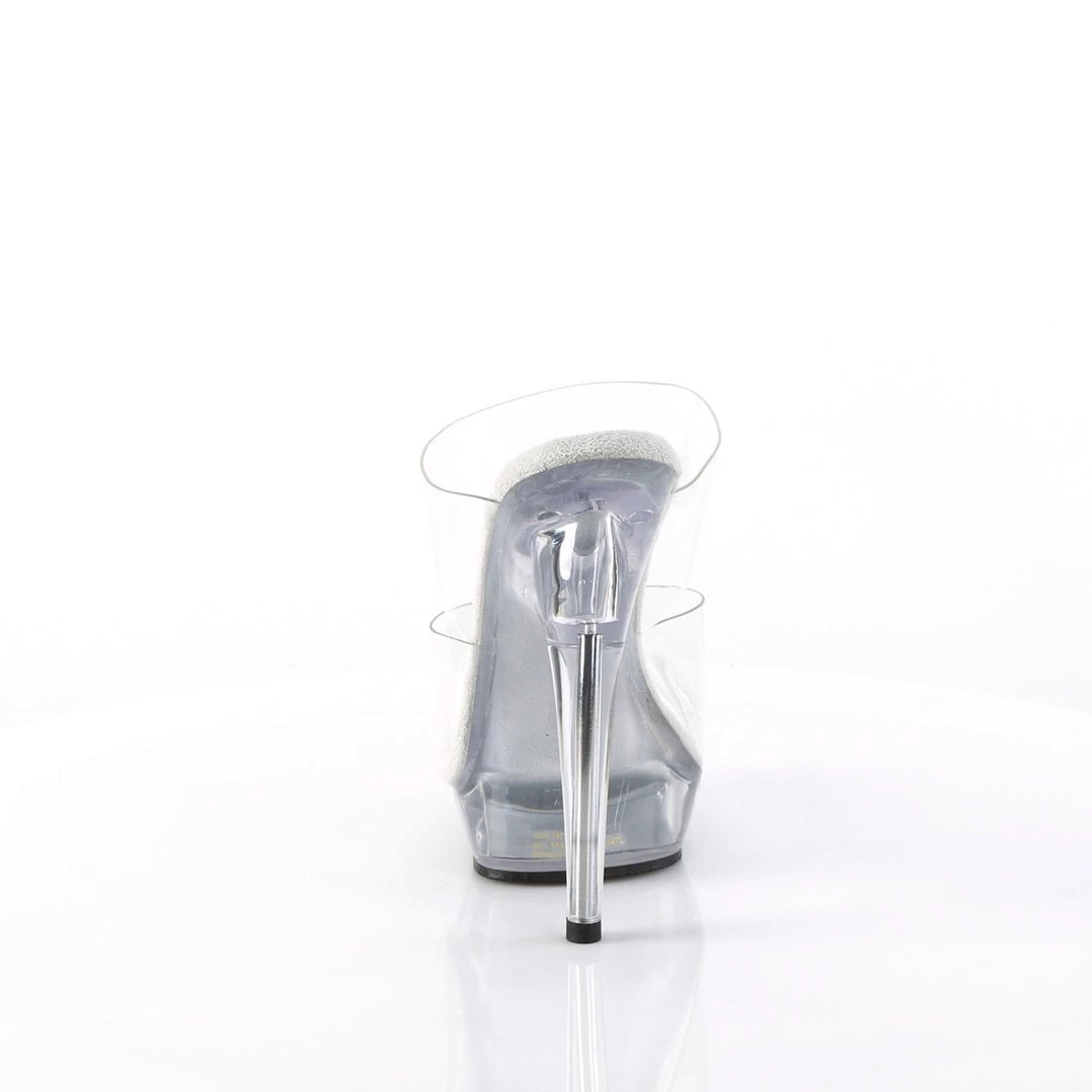 Gorgeous 6″ (152mm) heel, 1″ (25mm) platform two-band slide. Includes a pair of matching color gel insole for arch support and comfort.
