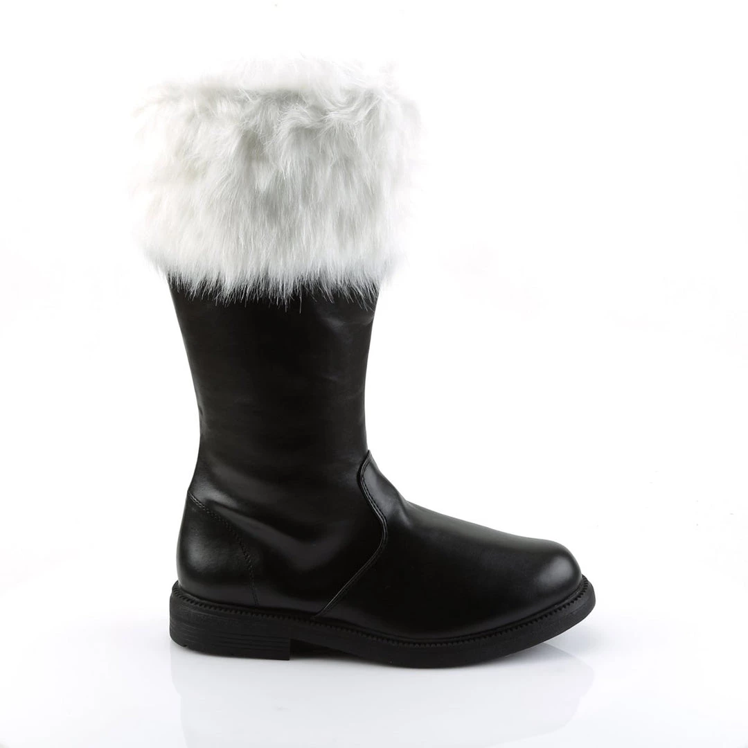 These stylish boots from Funtasma will complete the Santa look with the classic black synthetic boot and fluffy faux fur cuff at the topline. Perfect holiday or party wear. Synthetic upper. Synthetic lining. Manmade sole.