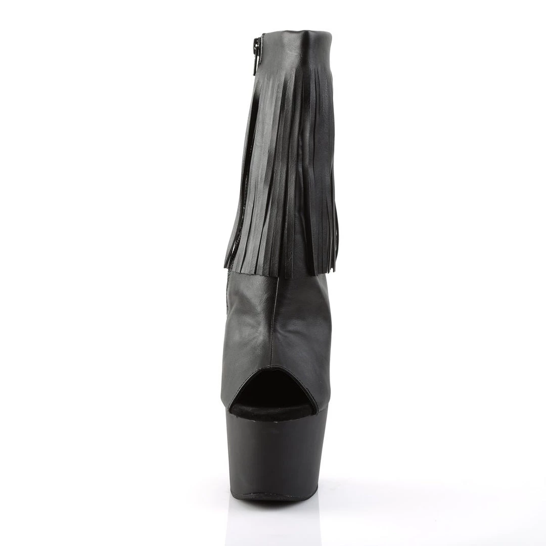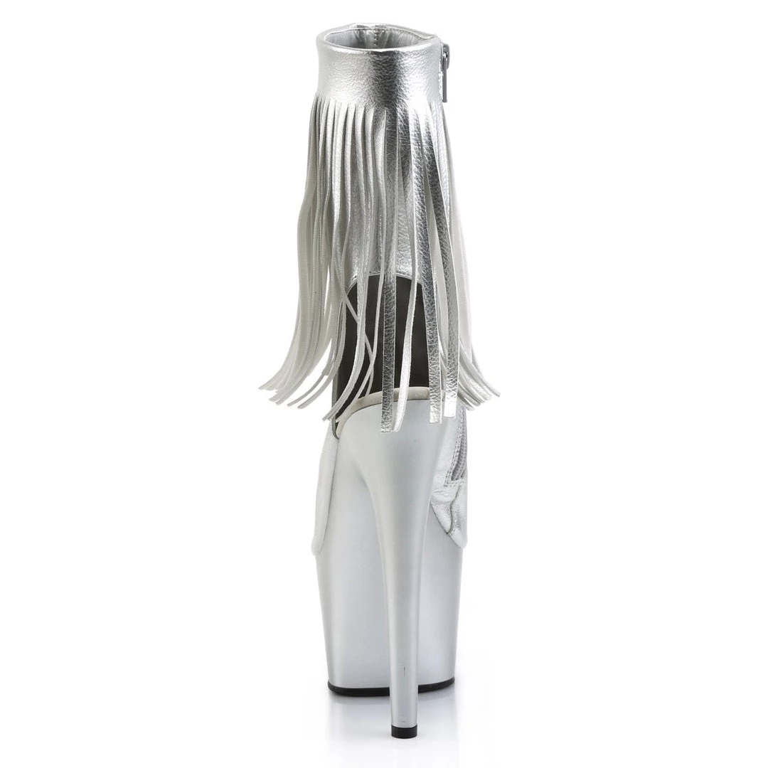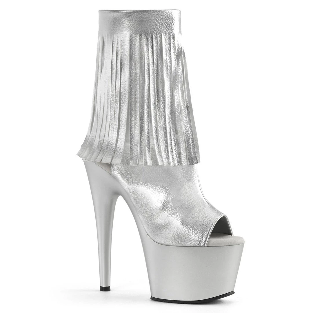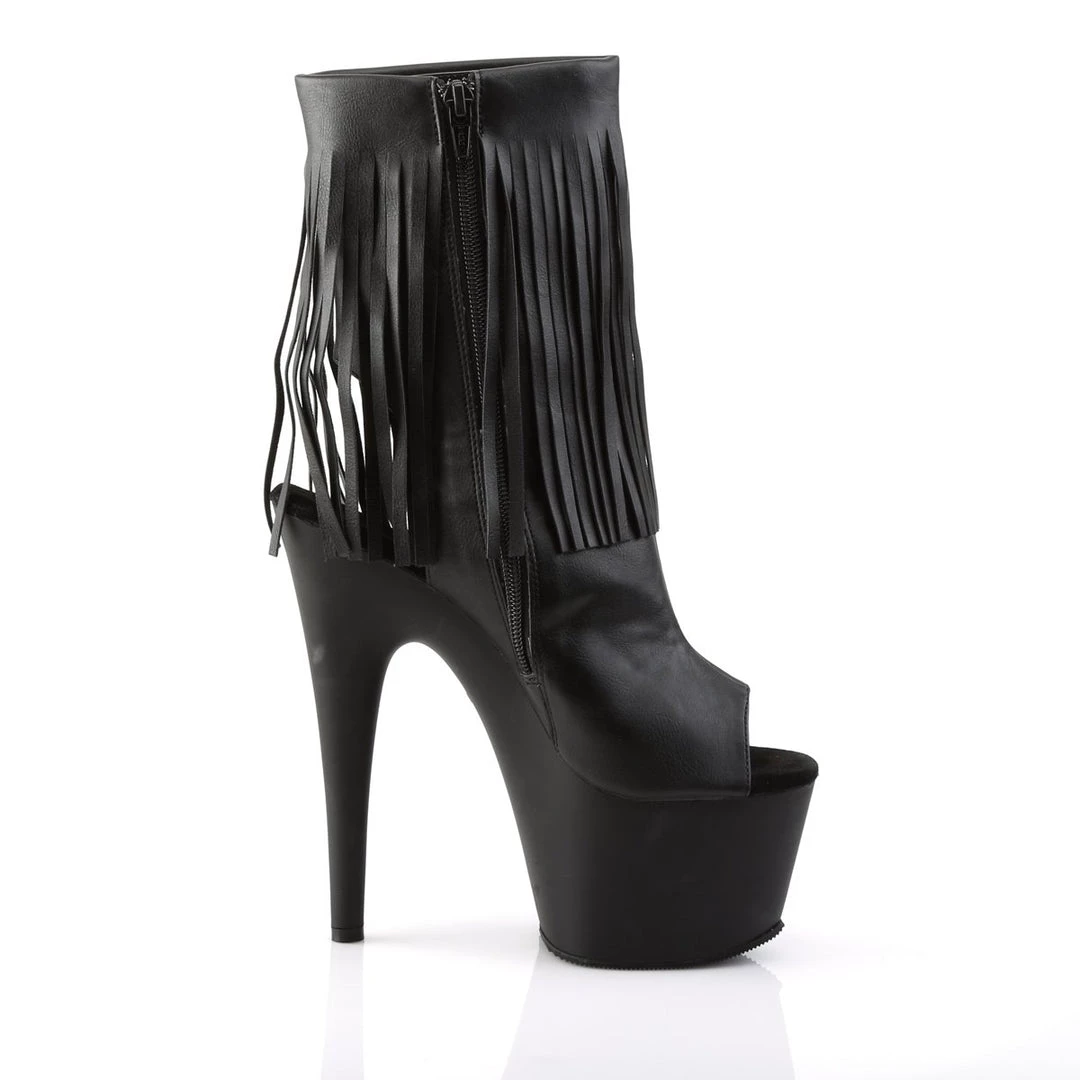 Pleaser Adore-1019 Ankle Boot with 7″ Heel, 2 3/4″ Platform Open Toe/Back Fringed Ankle Boot, Full Inner Side Zipper