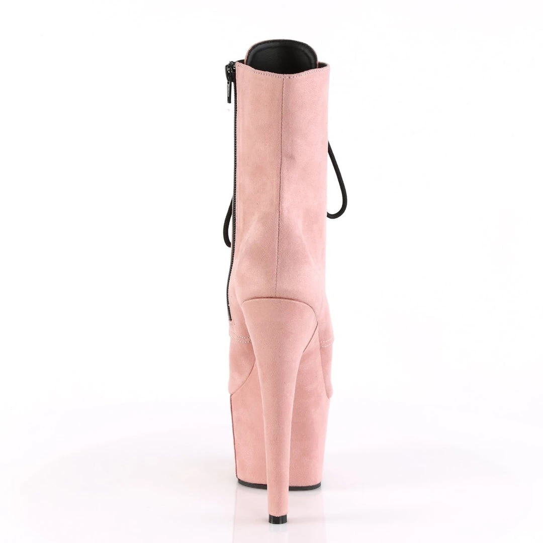 Gorgeous 7″ (178mm) heel, 2 3/4″ (70mm) platform lace-up front ankle boot featuring fully wrapped platform bottom, inside zip closure.