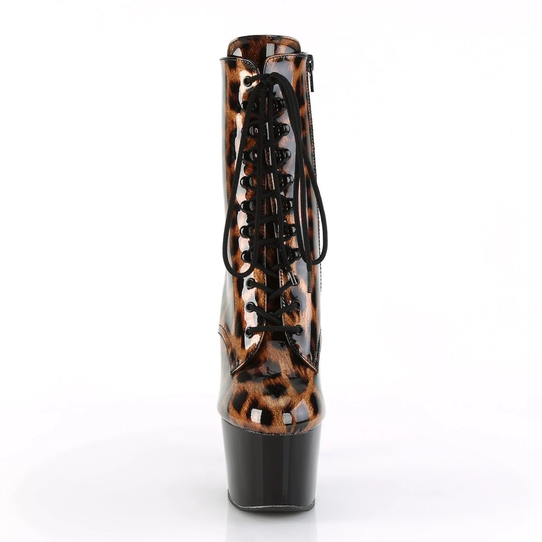 Get wild! Sexy 7″ (178mm) heel, 2 3/4″ (70mm) platform lace-up front ankle boot with leopard print with full inside zip closure.