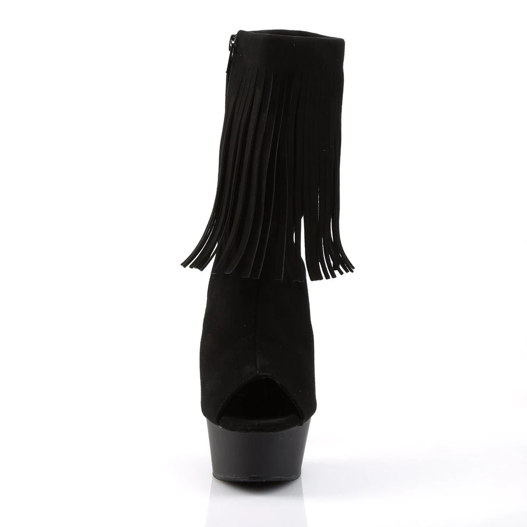 Sexy with swagger, these open toe/back suede fringed ankle boots feature a side zip and a 6 heel. Discover the ultra sexy, show-stealing Pleaser shoes that are legendary among fashionistas, performers and sexy footwear enthusiasts around the world!