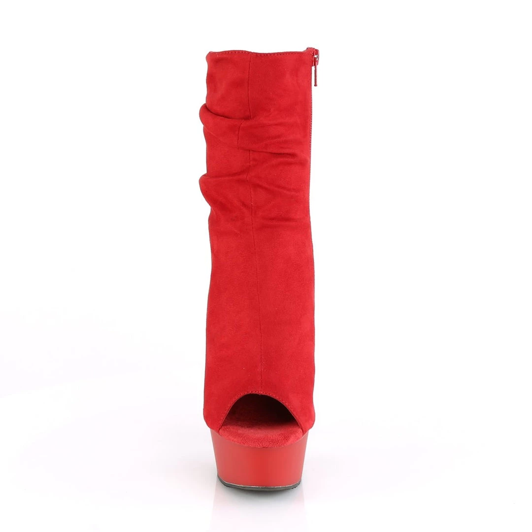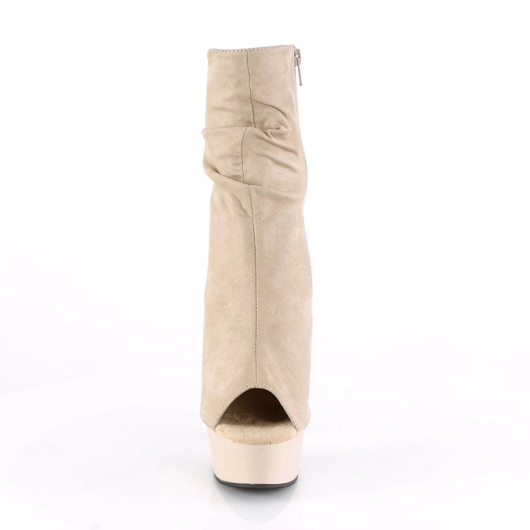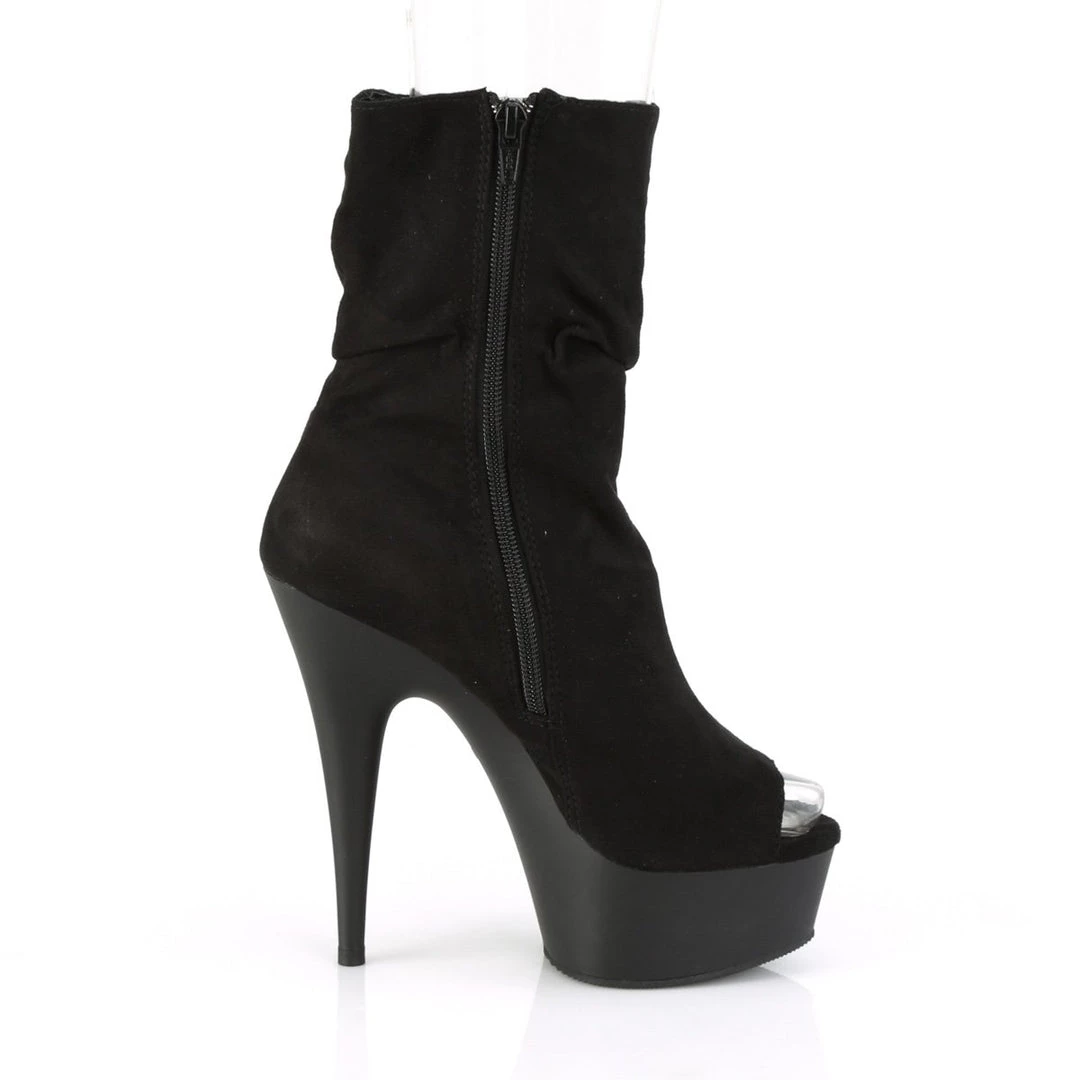 Sleek & gorgeous 6″ (152mm) heel, 1 3/4″ (45mm) platform open toe slouch ankle boot with inside zip closure for easy wear and go.
