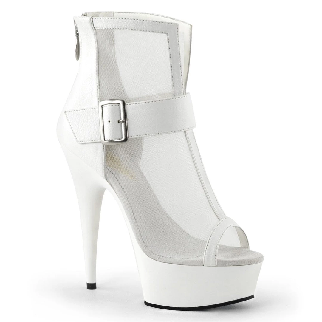 Show off your style in the next event with this classic front cut design platform Open Toe Ankle Boot. 6″(15.25cm) Heel, 1 3/4″(4.5cm) PF Open Toe Slit Front Bootie With Buckled Ankle Strap, Full-length Back Zip Closure.