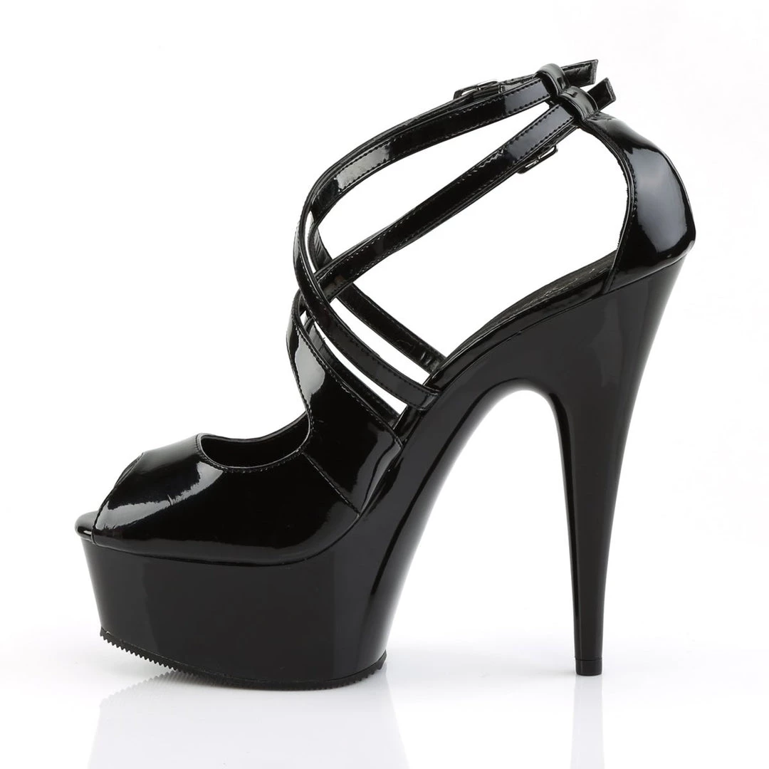 Sexy and Fashionable, these peep toe double criss-cross ankle strap sandals. The soft cushioning ensures a comfortable wear, while the front platform with 1.75 inch height balances the high 6 inch clear heels for added stability and style.