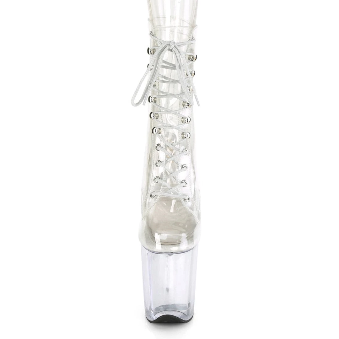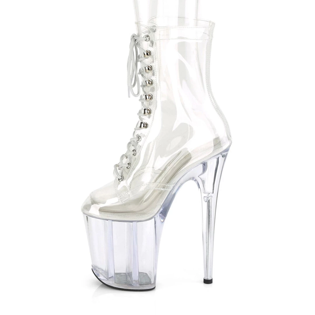 Versatile ands sexy 8″ (200mm) heel, 4″ (100mm) platform lace-up front ankle boot.